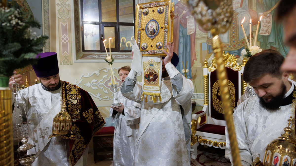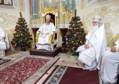 После Евангельского чтения, владыка Пантелеимон огласил Рождественское послание Святейшего Патриарха Московского и всея Руси Кирилла архипастырям, пастырям и всем верным чадам Русской Православной Церкви.