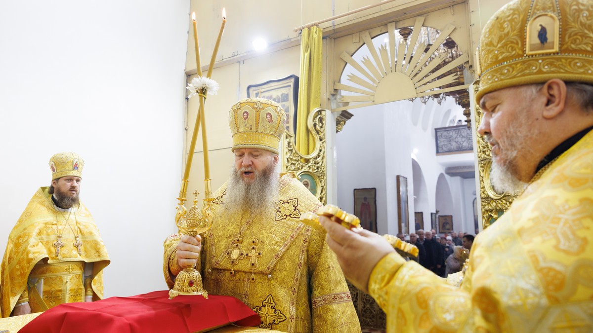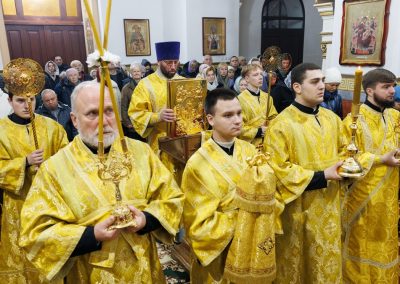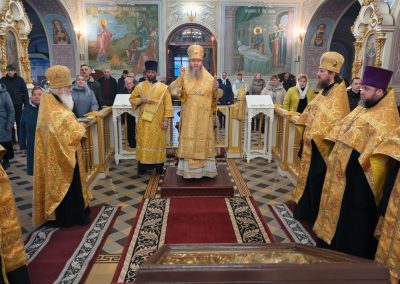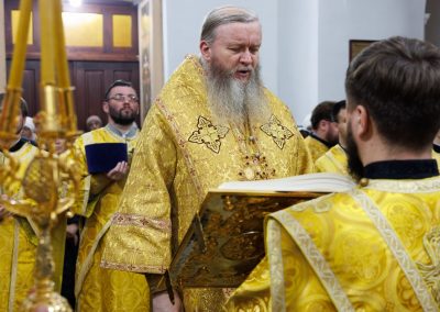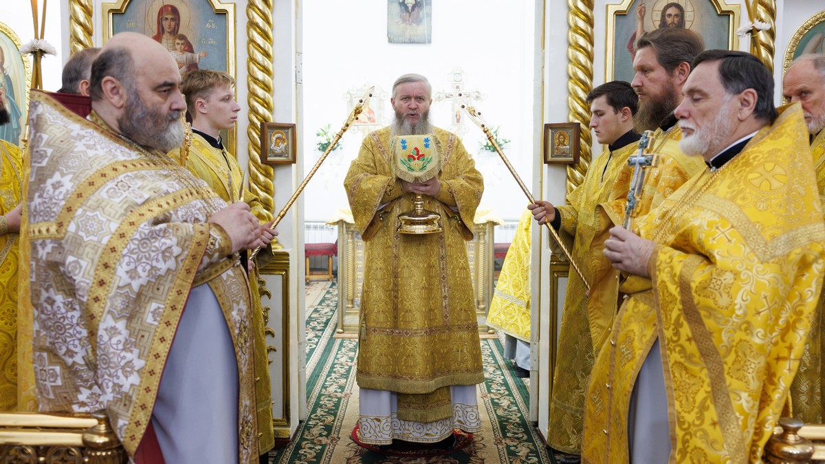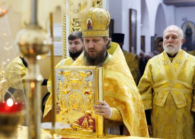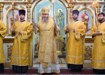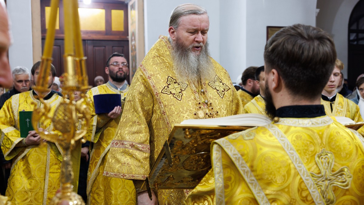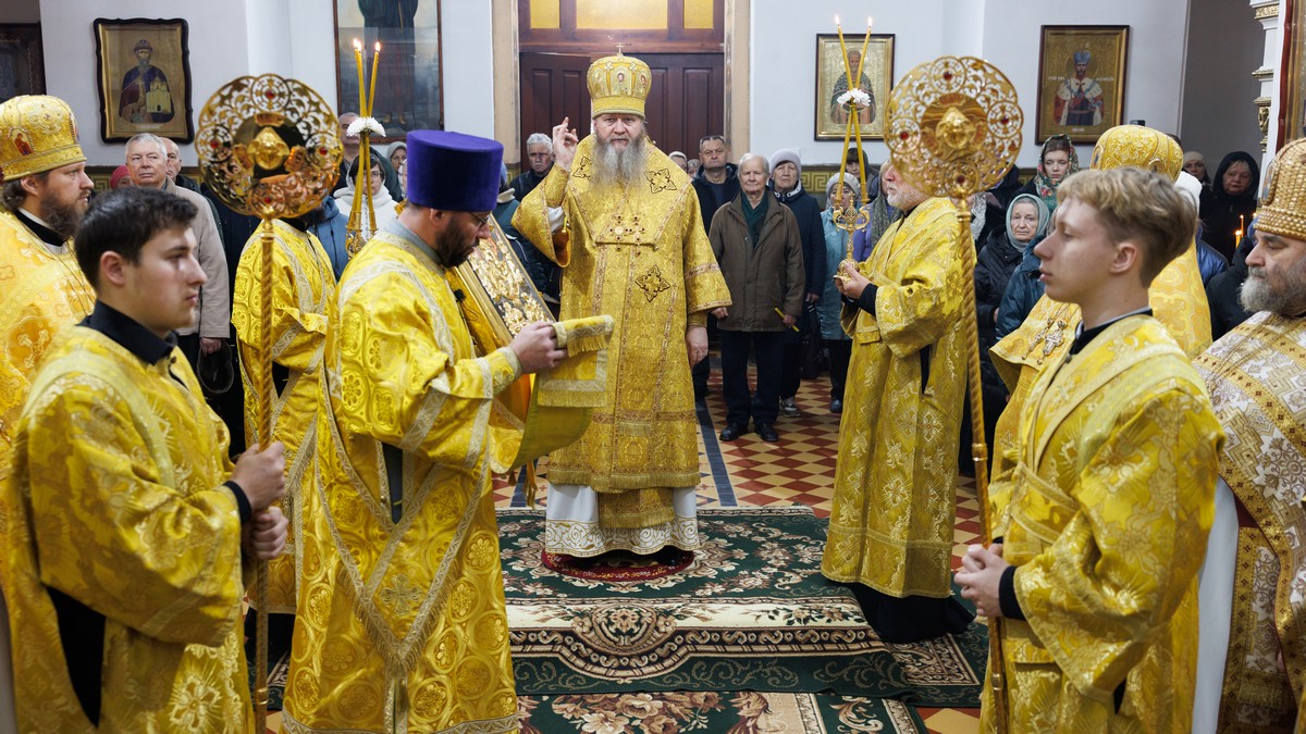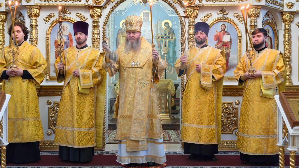 Накануне воскресного дня владыка совершил Всенощное бдение в Петро-Павловском кафедральном соборе.