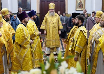 По окончании богослужения владыка поблагодарил настоятеля и всех его помощников за усердные труды над преображением храма Божия, пожелал крепости сил и терпения во всех благих начинаниях.