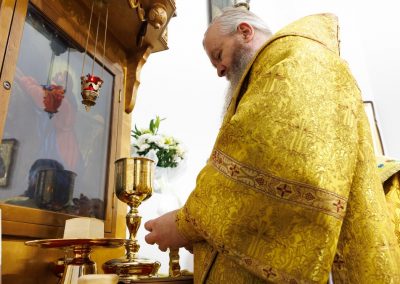Сразу по окончании Литургии был совершен благодарственный молебен по случаю завершения реставрационных работ.