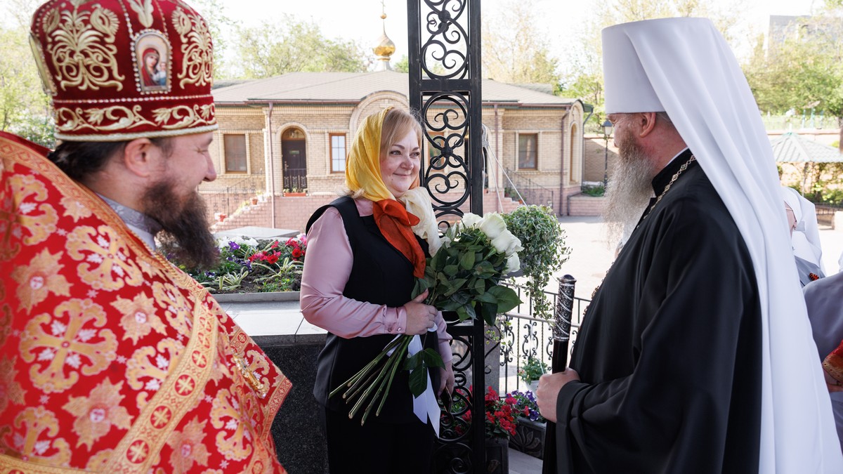 За богослужением молилась временно исполняющий полномочия Главы городского округа муниципальное образование городской округ город Алчевск Гребенькова Светлана Петровна.