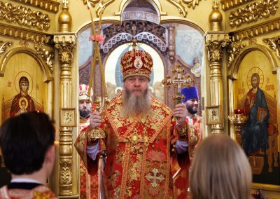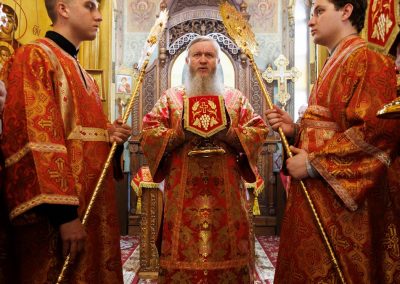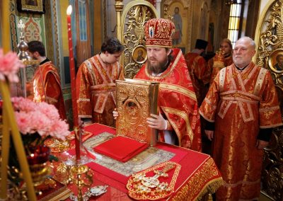 После сугубой ектении владыка вознес молитву о мире на Святой Земле, молитву о Святой Руси, и молитву об исцелении болящих.