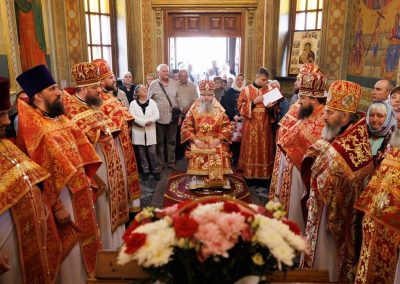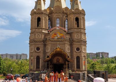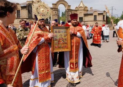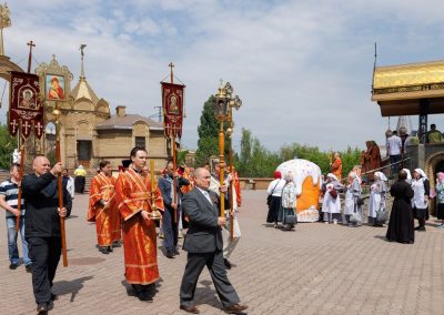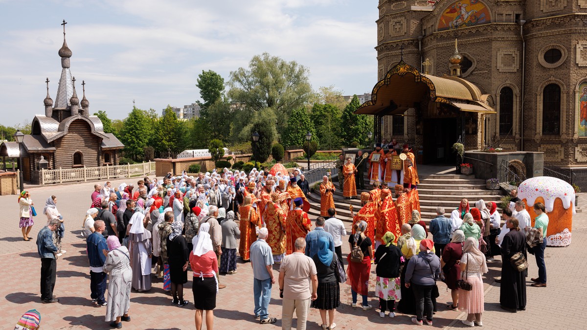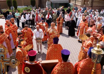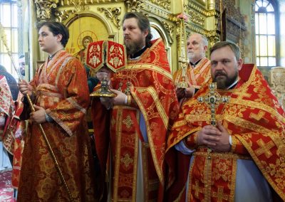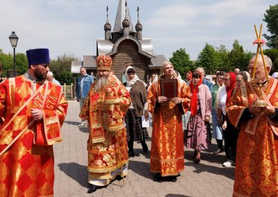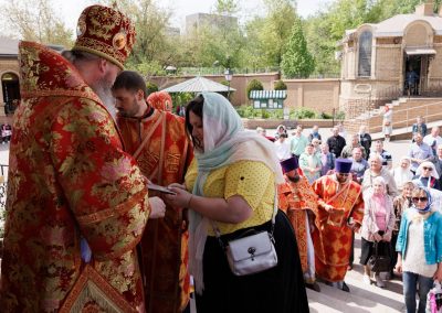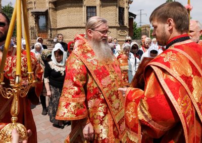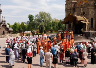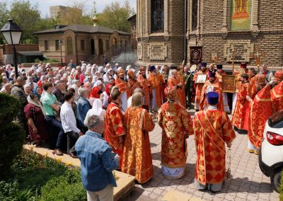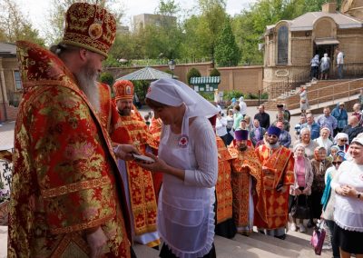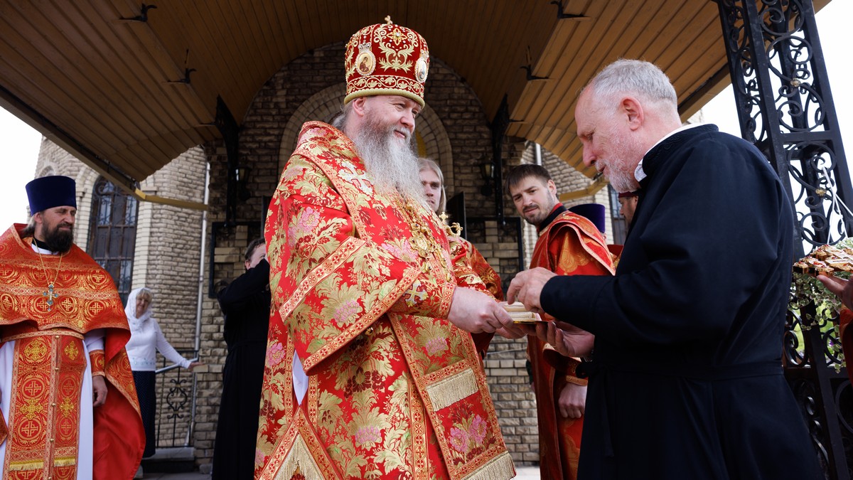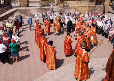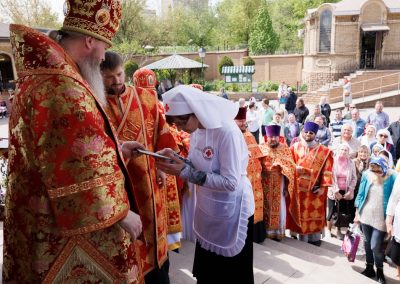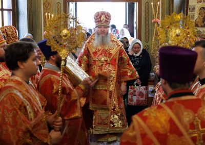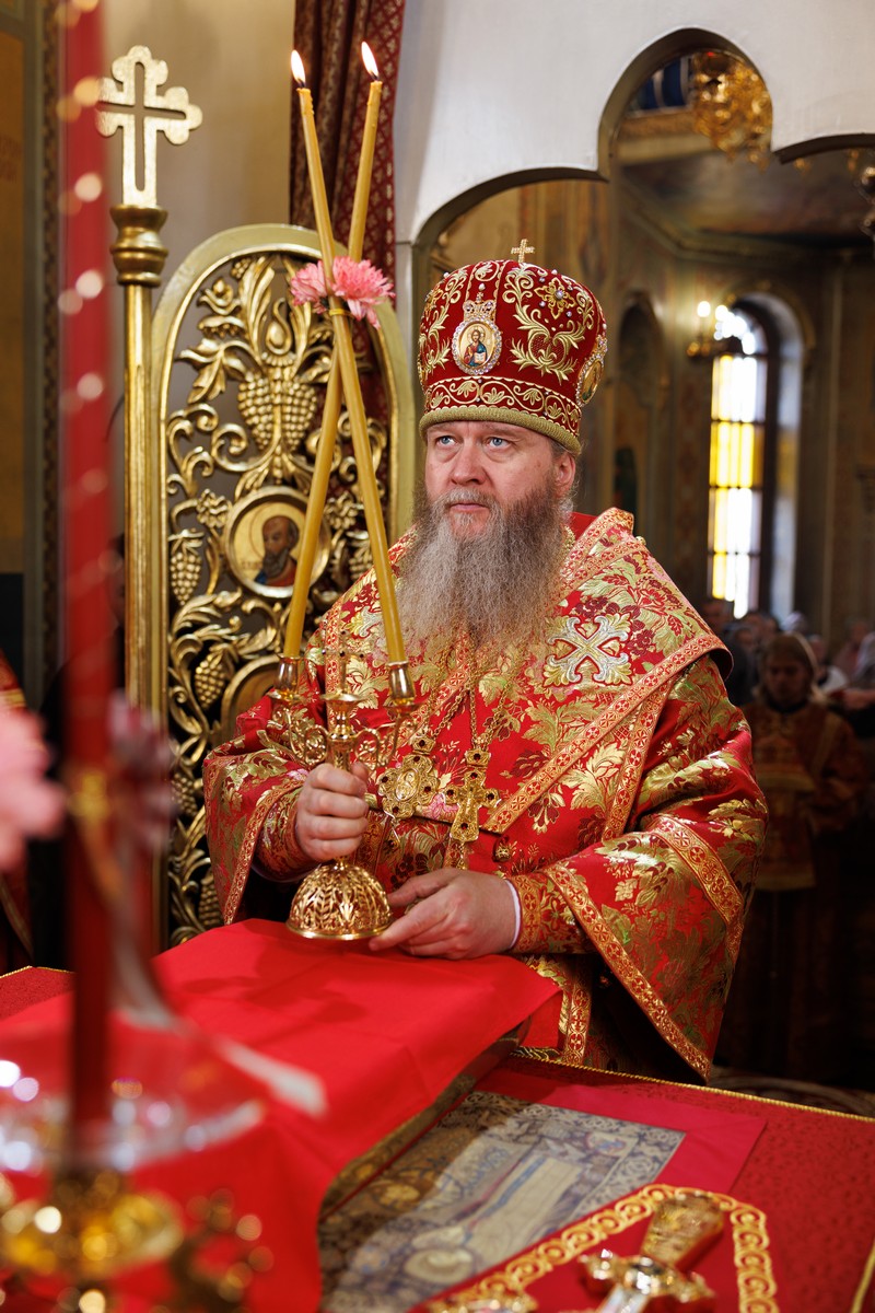 По завершении Крестного хода, митрополит Пантелеимон вознес молитву ныне чествуемому святому, поздравил духовенство и верующий народ с Пасхой и храмовым праздником.