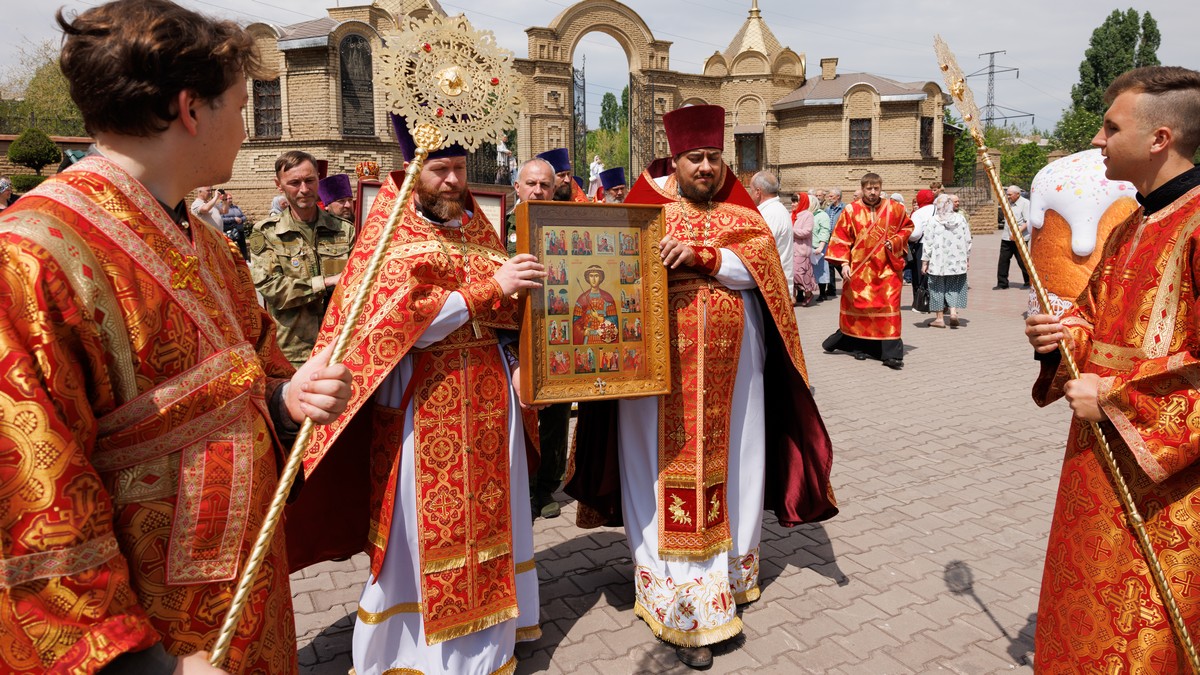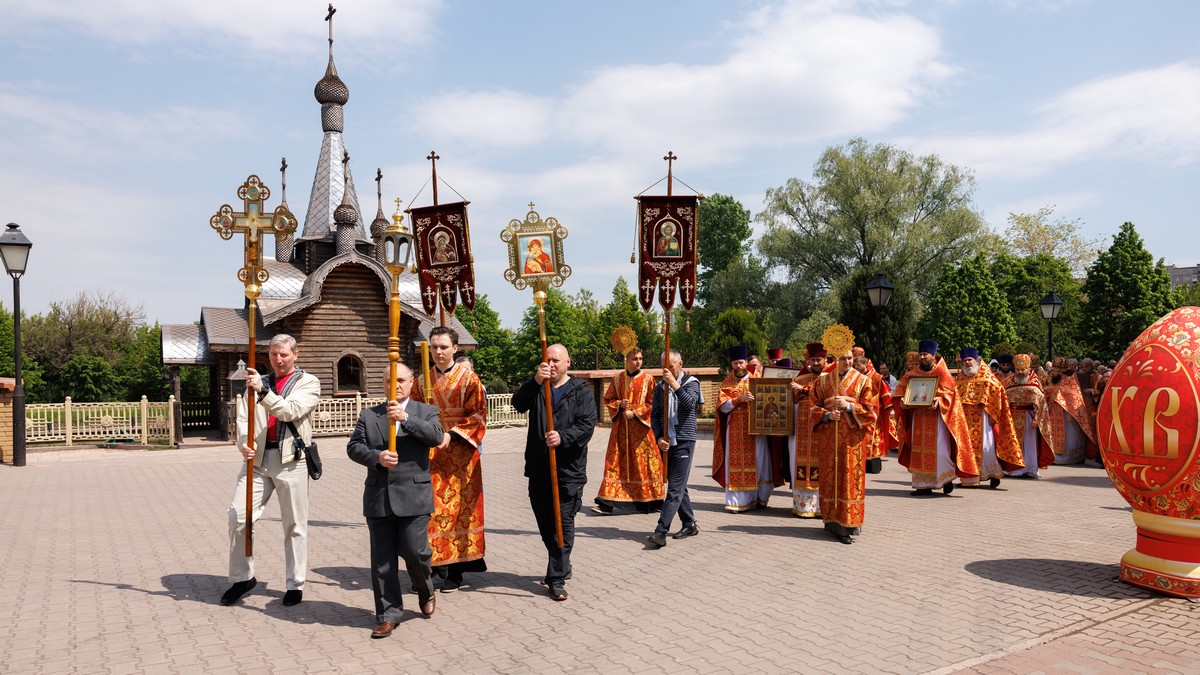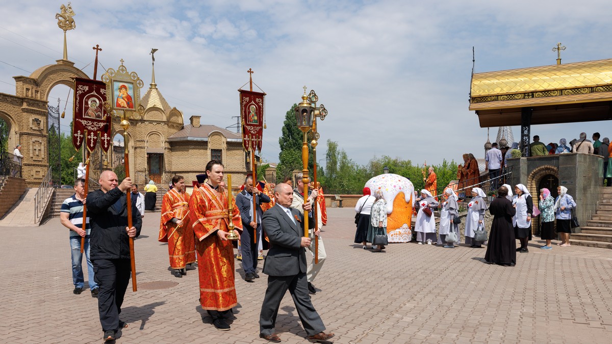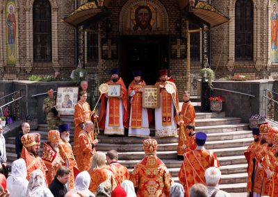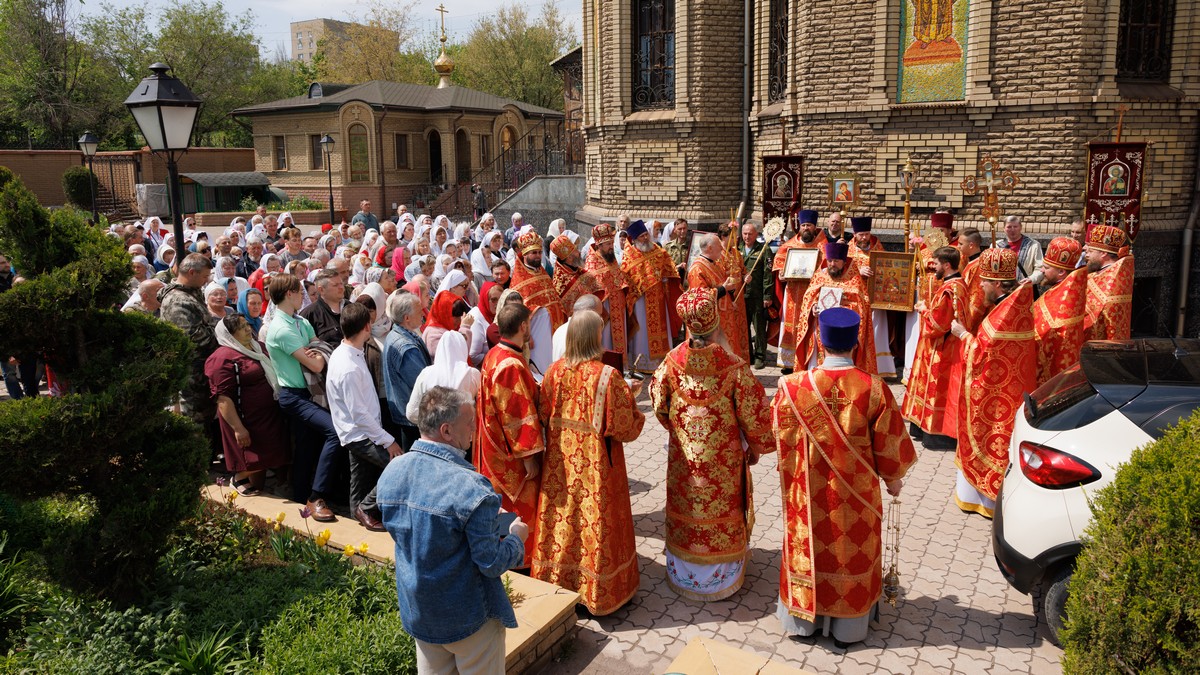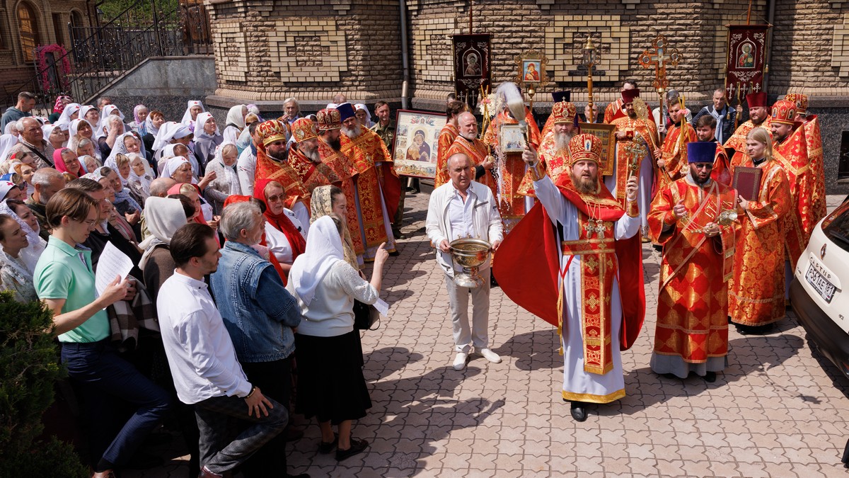 По окончании Литургии был совершен Пасхальный Крестный ход вокруг храма.