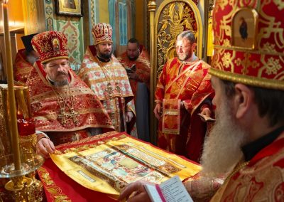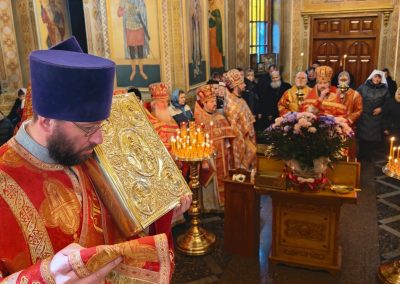 По окончании Литургии, была вознесена молитва сщмч. Фаддею, после которой отец секретарь произнес проповедь о жизни воспоминаемого святого, поздравил молящихся и передал благословение Правящего архиерея.