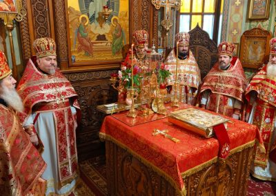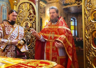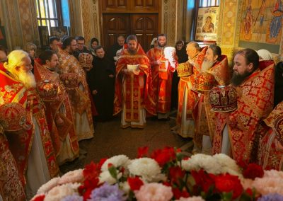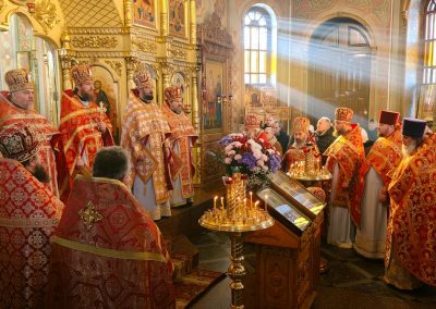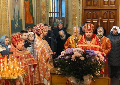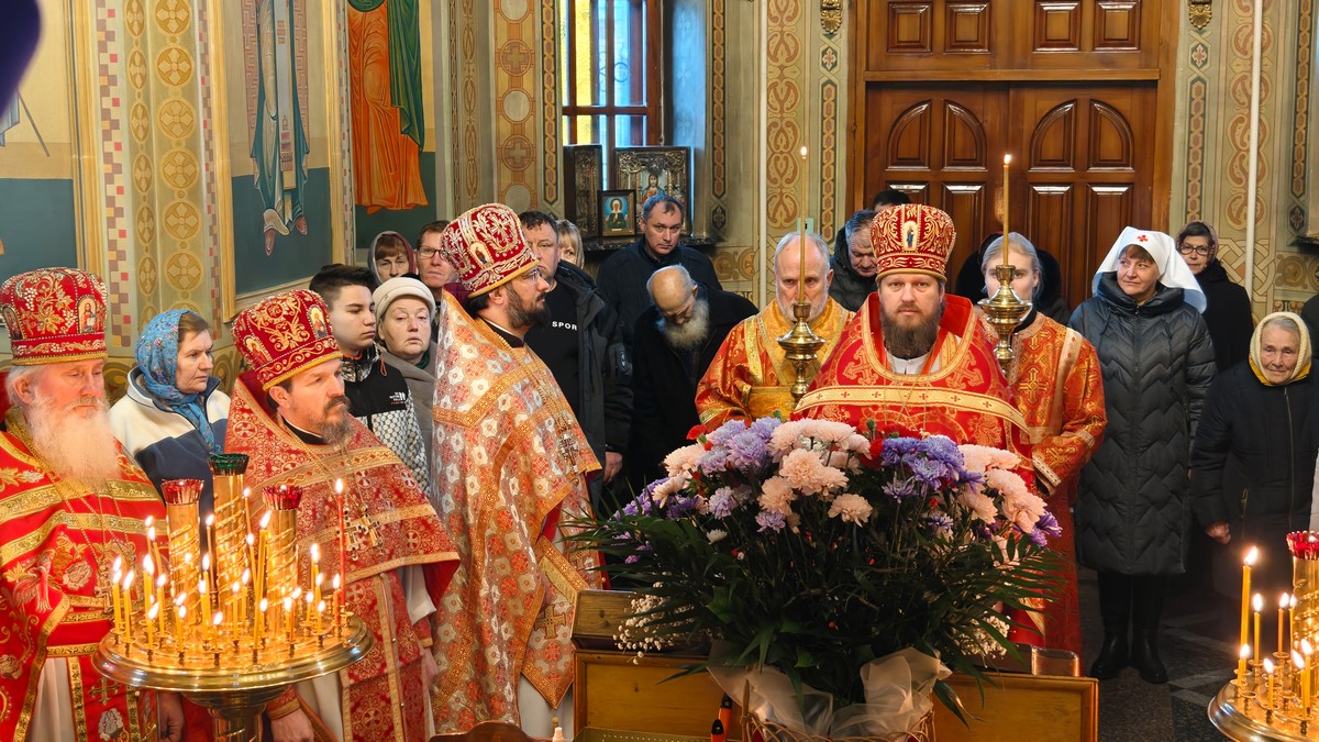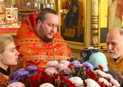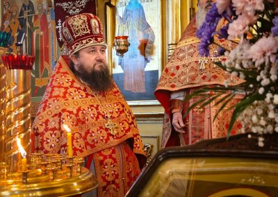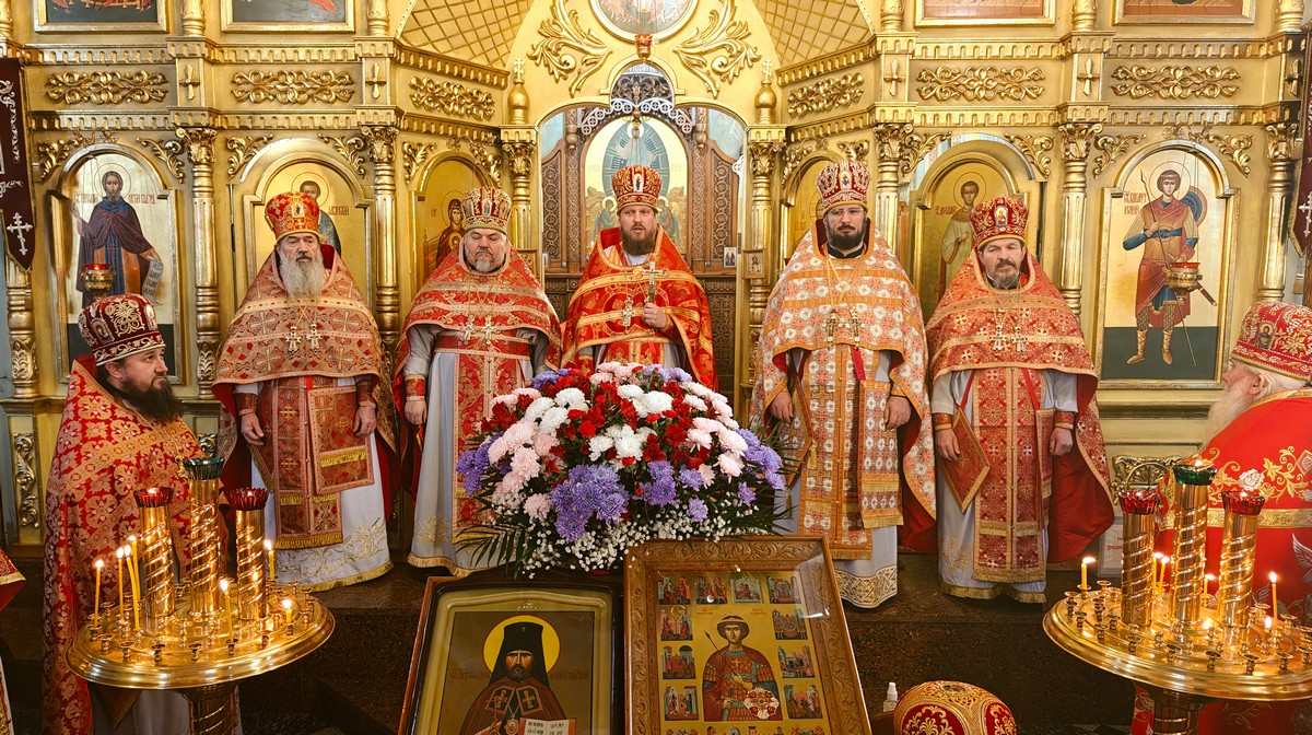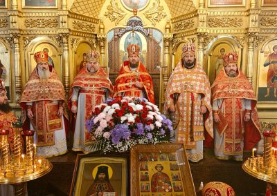 В этот день духовенство и верующий народ, почтили память священномученика Фаддея (Успенского), архиепископа Тверского, частица мощей которого заложены в престол нижнего придела храма.