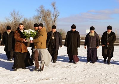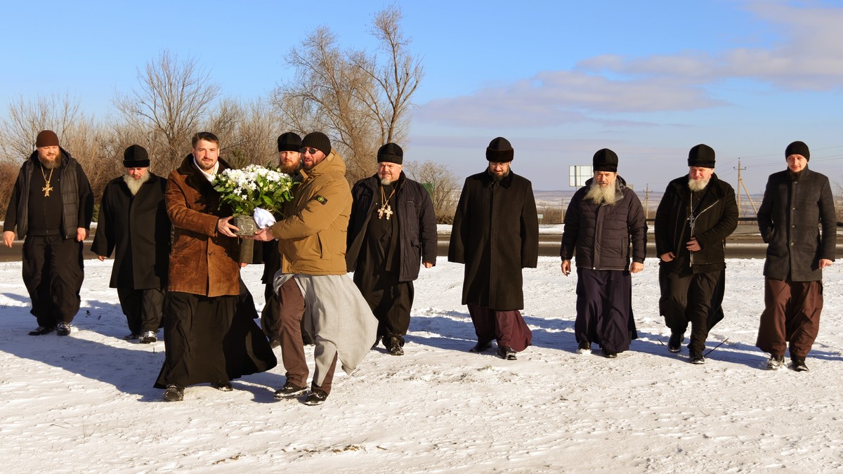 В завершение богослужения и после братского общения, священнослужители возложили цветы к поклонному Кресту, установленному по благословению приснопамятного митрополита Иоанникия на въезде в город и освященному 31 декабря 2001 года .