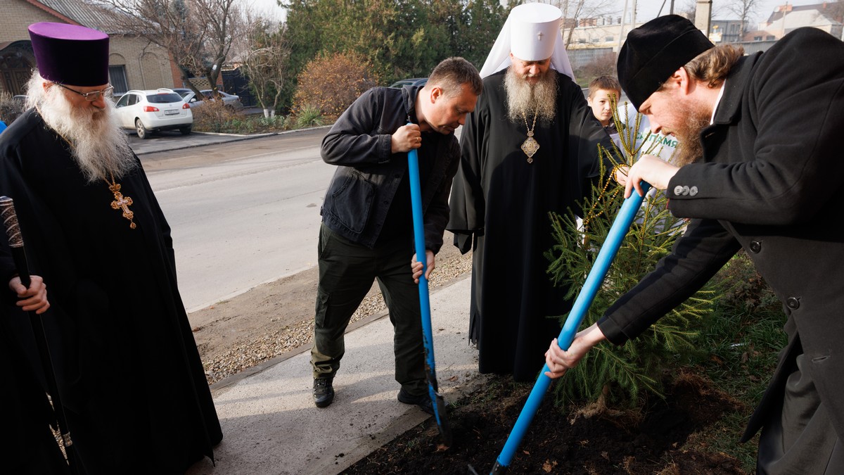 23 ноября, Высокопреосвященнейший Пантелеимон, митрополит Луганский и Алчевский, в рамках акции «Сад Памяти», принял участие в высадке молодых елей освятил отреставрированное здание воскресной школы при Вознесенском соборе города Александровск.