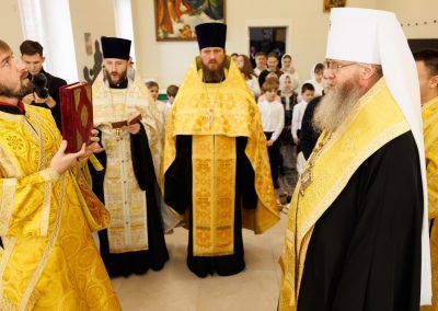 После освящения владыка поздравил всех с этим знаменательным событием, пожелал учителям и деткам помощи Божией в освоении преподаваемых знаний, мудрости и усердия.
