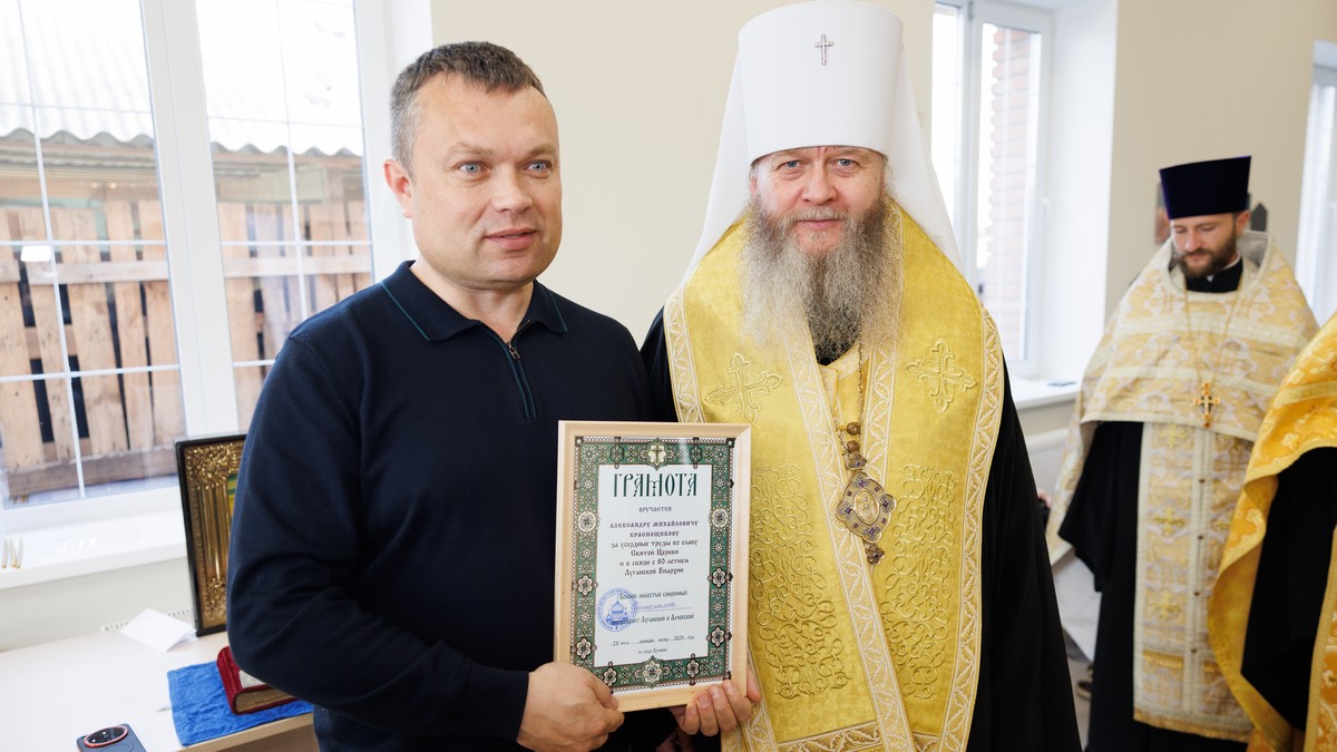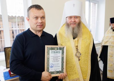 За активное участие в жизни Церкви, владыка вручил юбилейную грамоту А.Н Краснощекову.