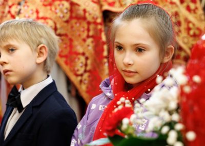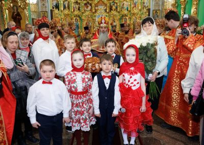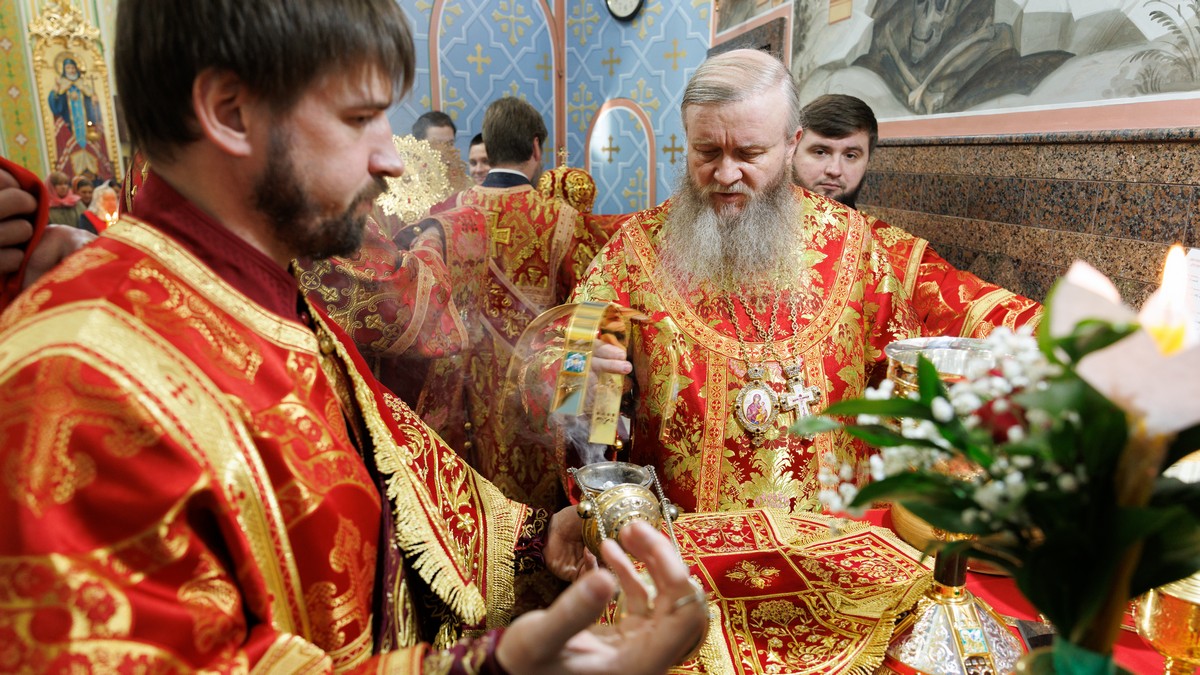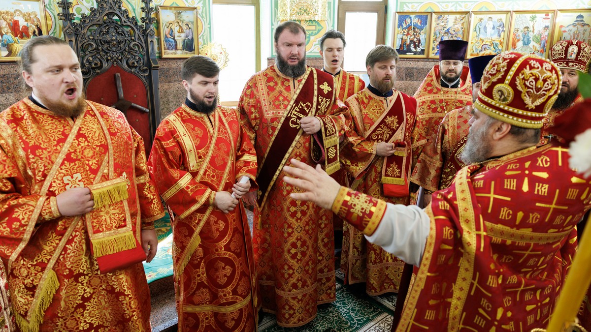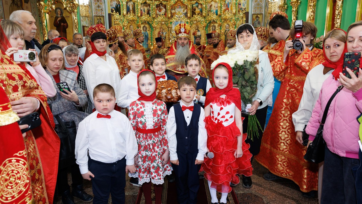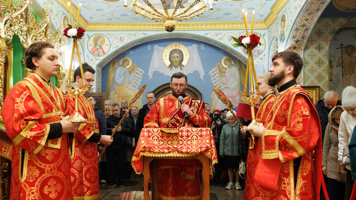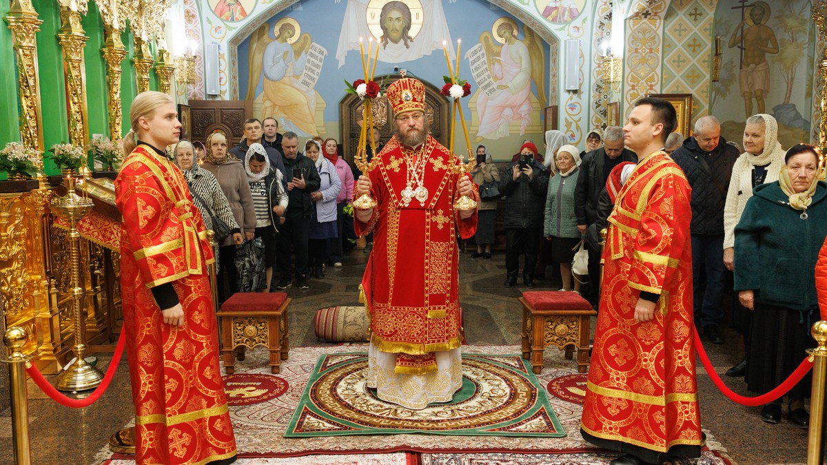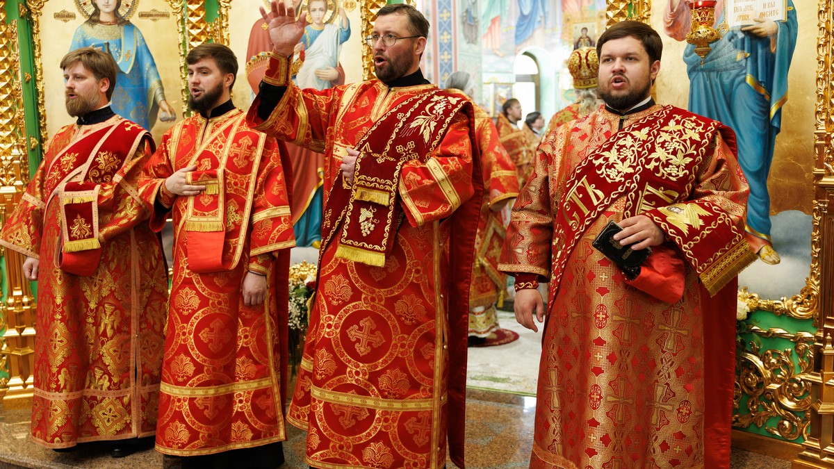 За Литургией Преосвященным архипастырям сослужил секретарь Луганской Епархии прот. Андрей Зозуля, секретарь Ровеньковской Епархии прот. Антоний Устименко, отцы благочинные и настоятель храма прот. Сергий Гутенко.