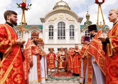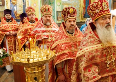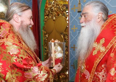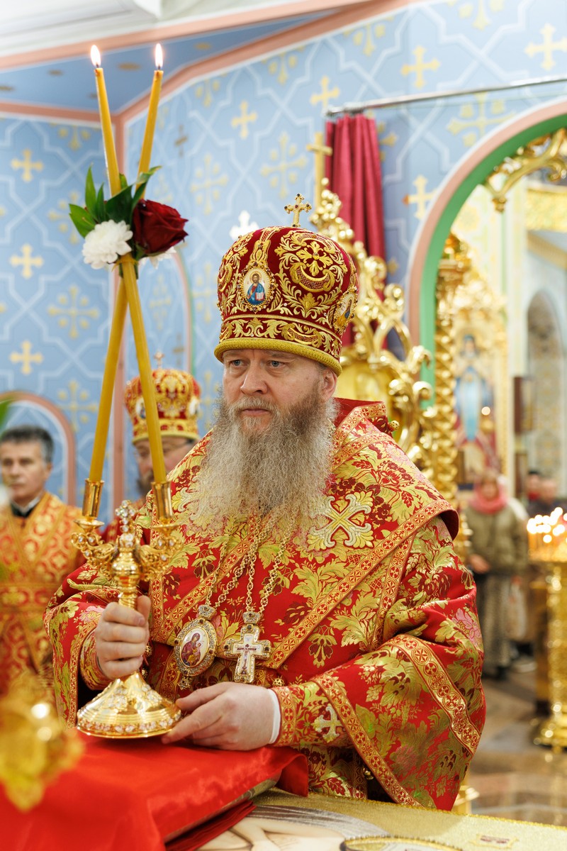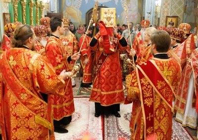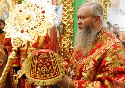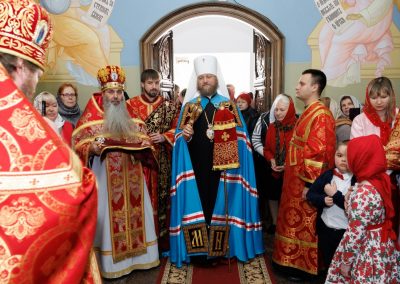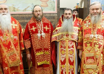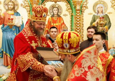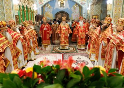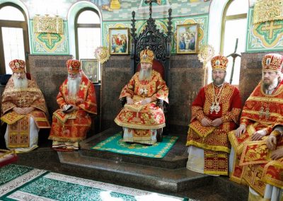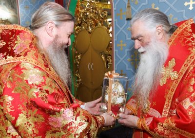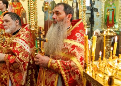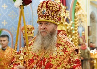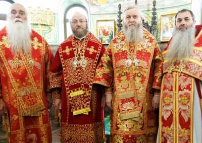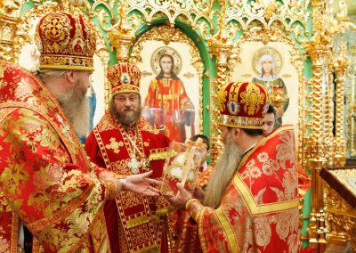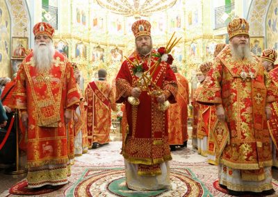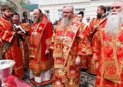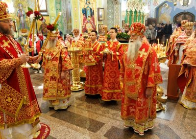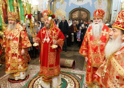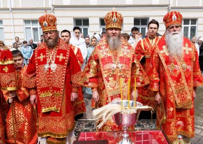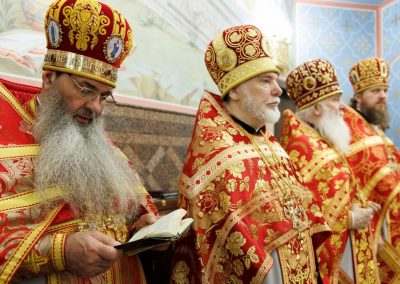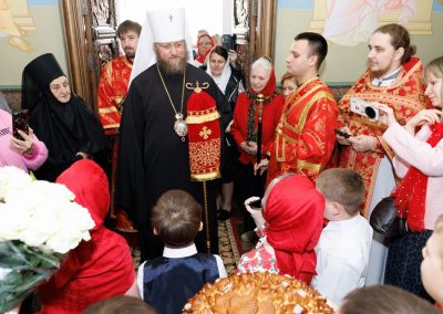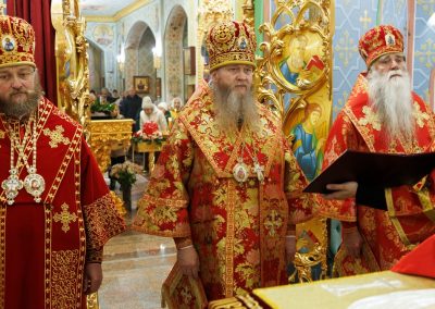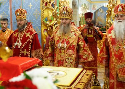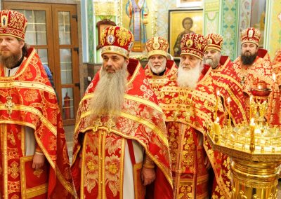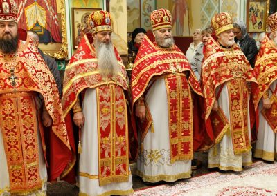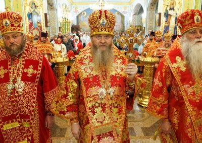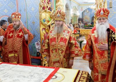 В завершение, правящий архиерей Луганской Епархии сердечно поблагодарил собратий архипастырей, духовенство и верующий народ за радость совместного духовного торжества, и после многолетий, провозглашенных протодиаконом владыки, осенили присутствующих святым Крестом.
