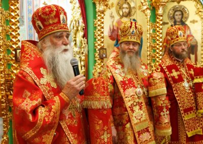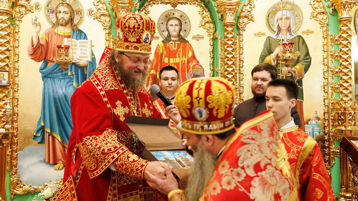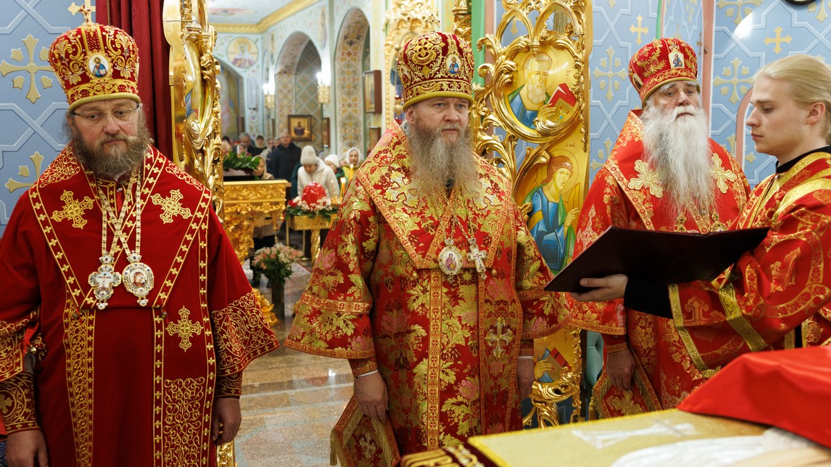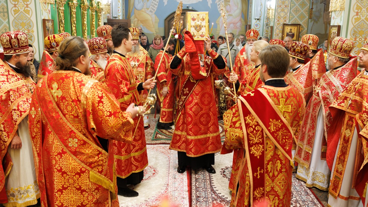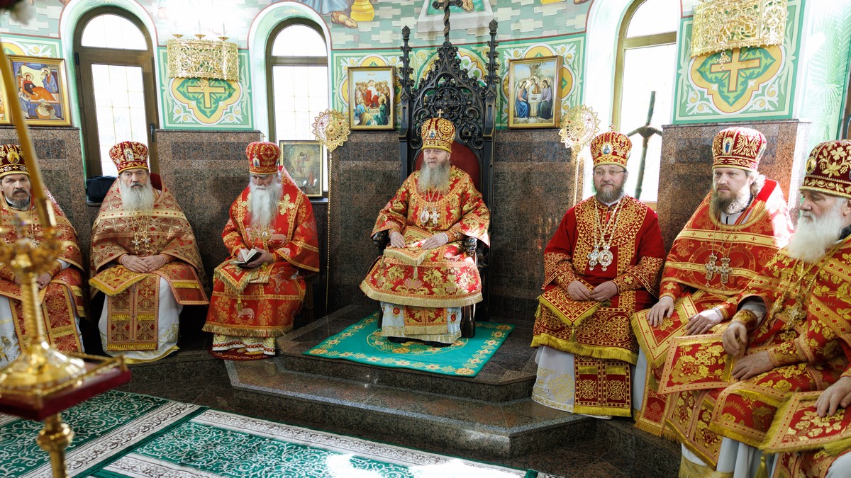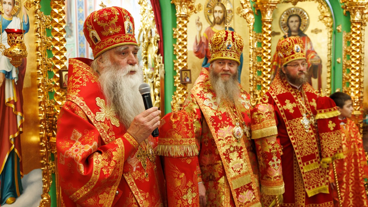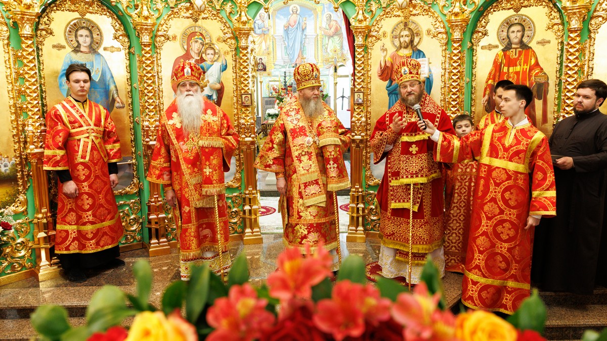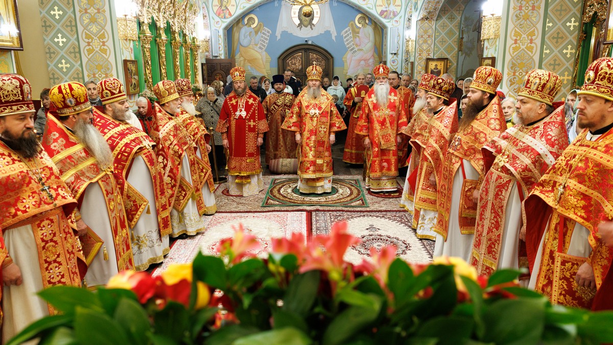 Вернувшись в храм, архипастыри произнесли приветственные слова с церковного амвона, обращенные ко всем участникам торжества.