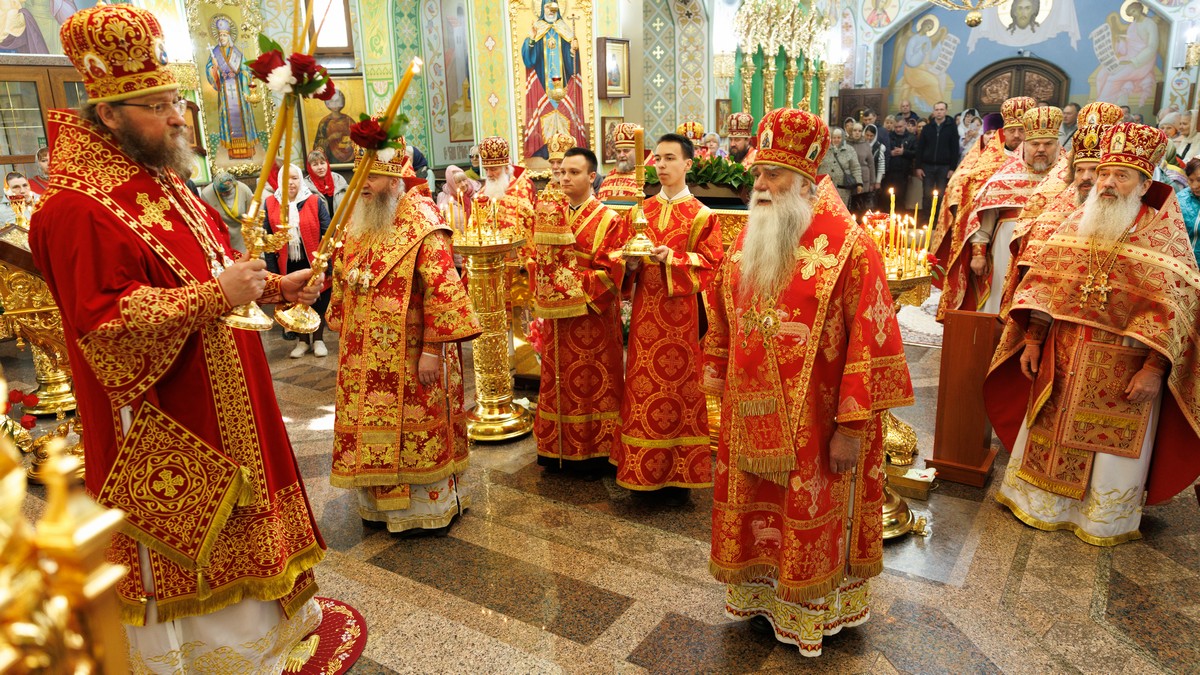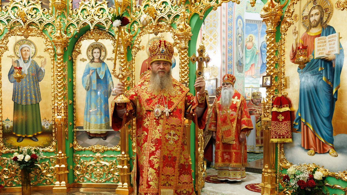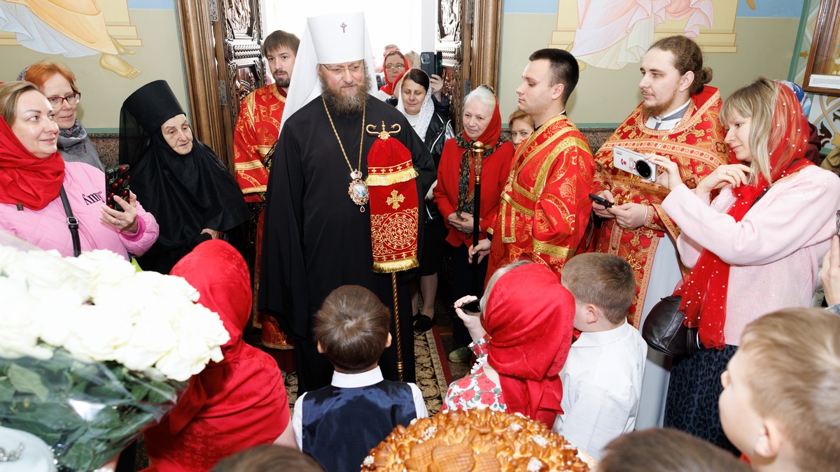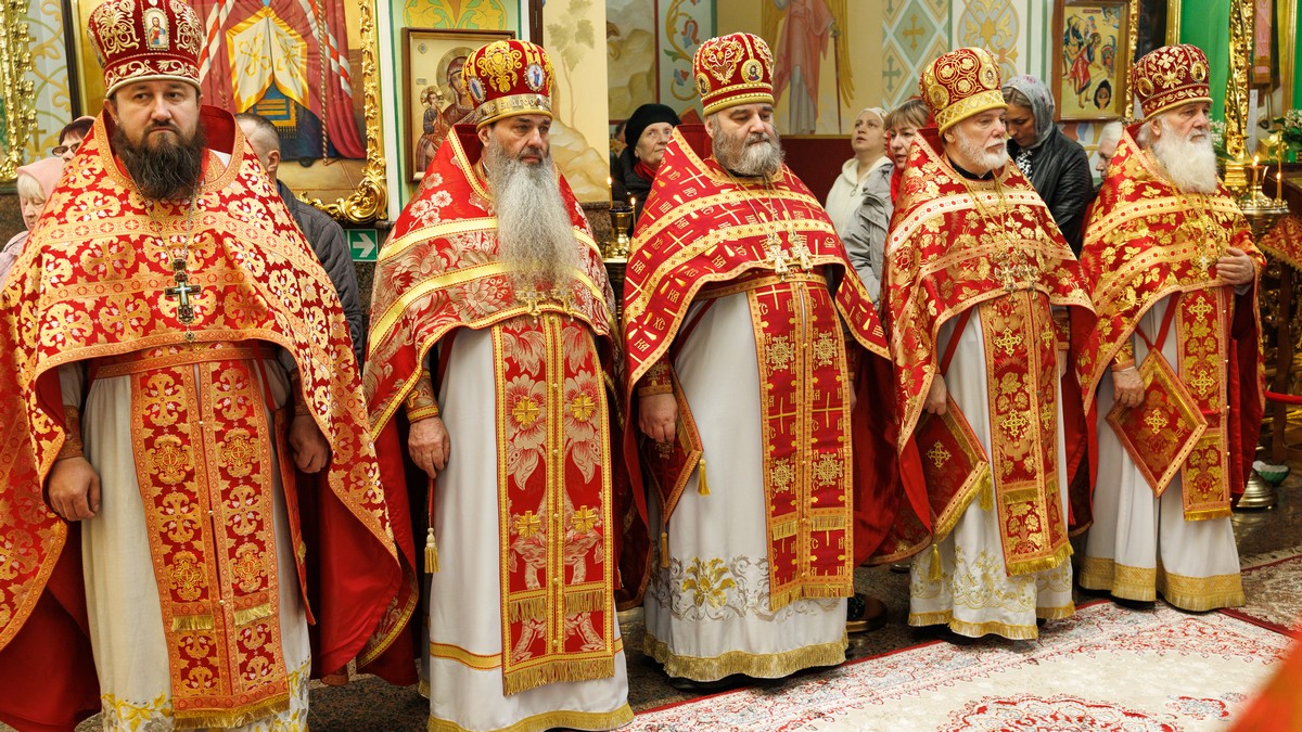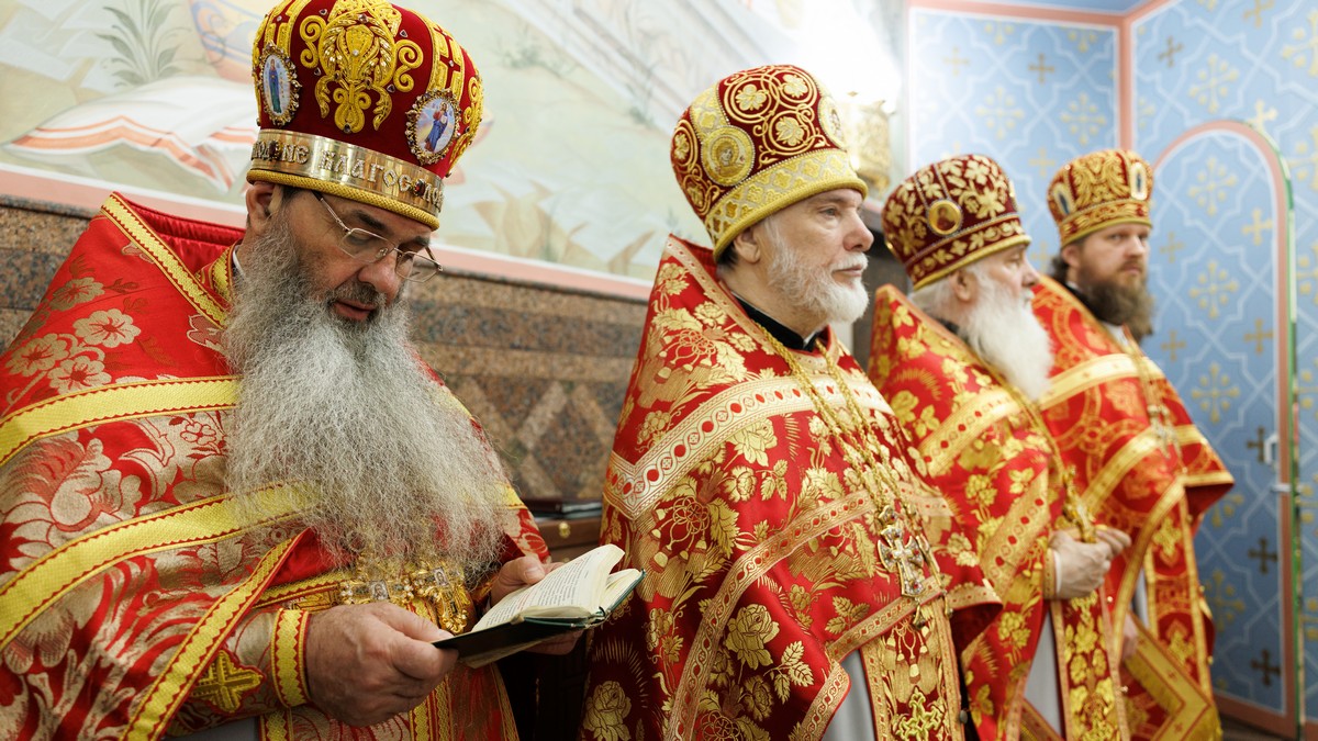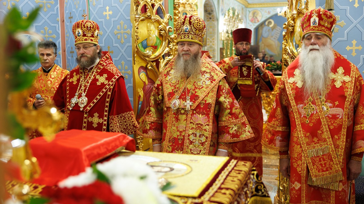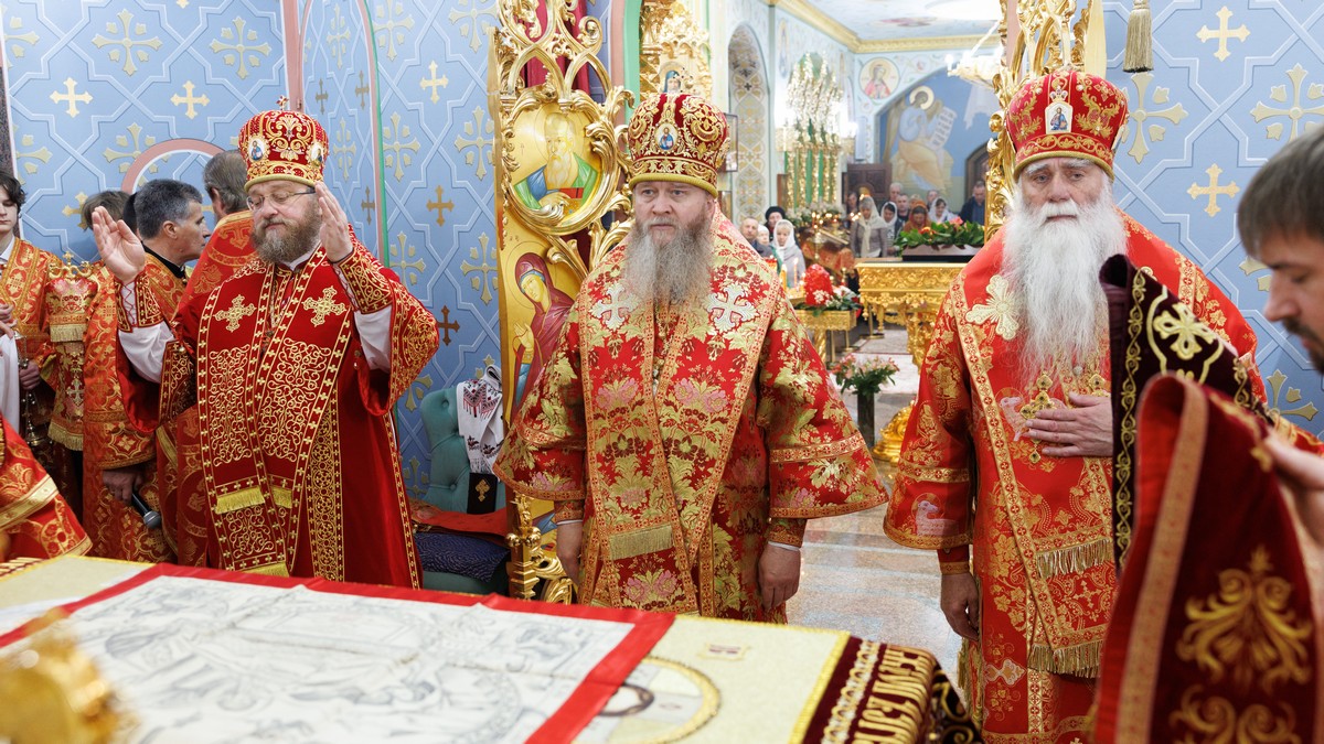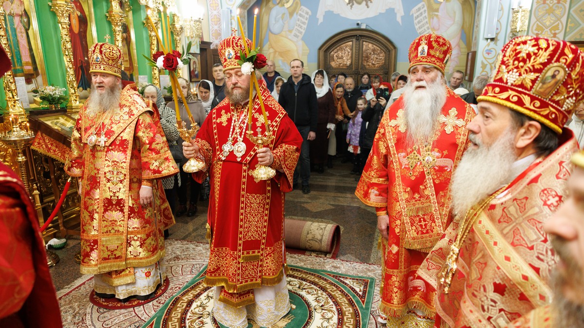Вернувшись в храм, архипастыри произнесли приветственные слова с церковного амвона, обращенные ко всем участникам торжества.
