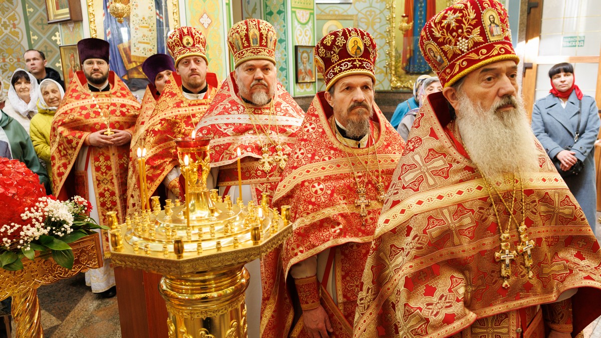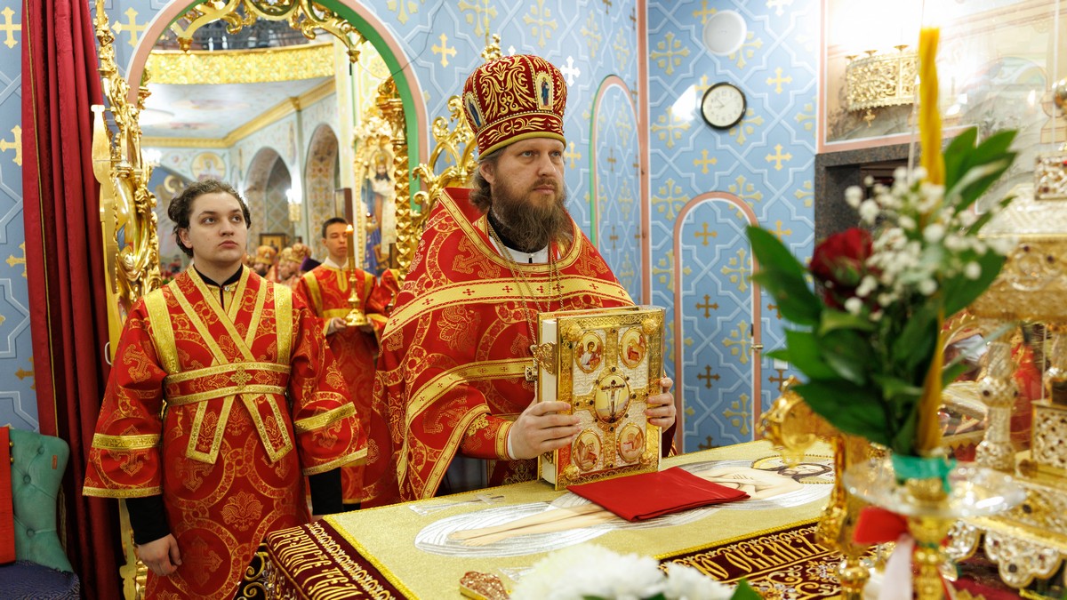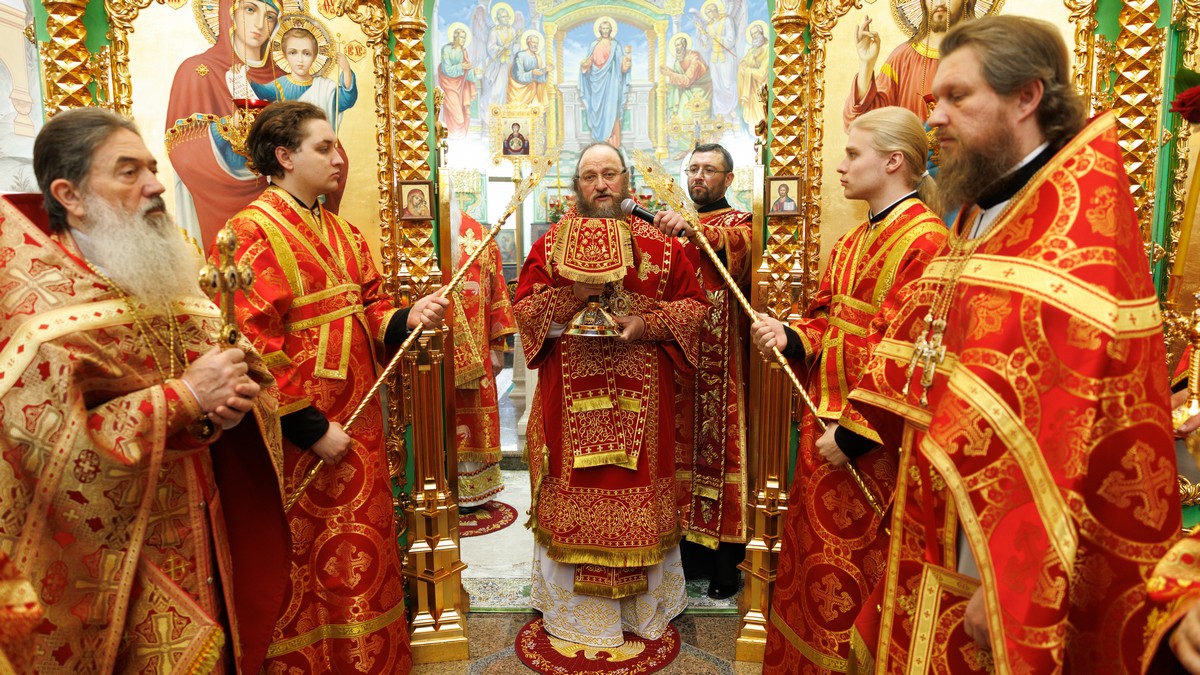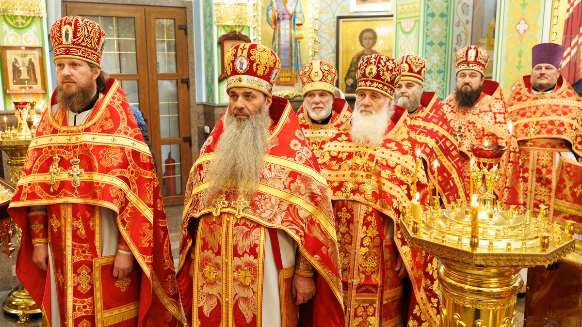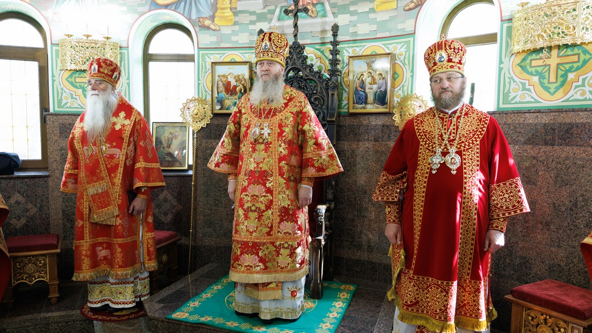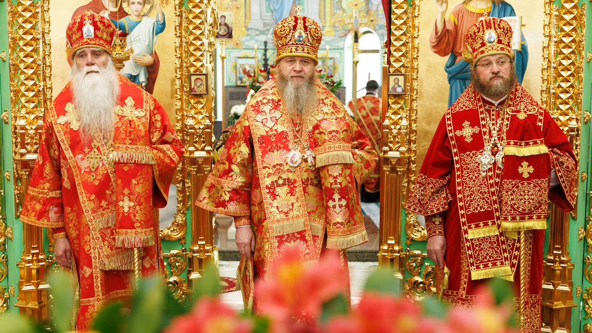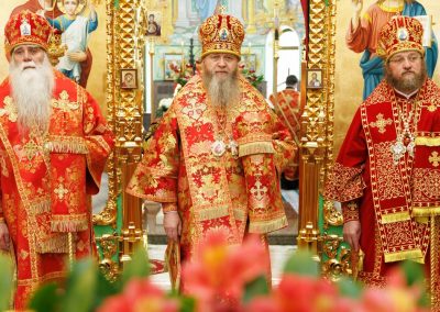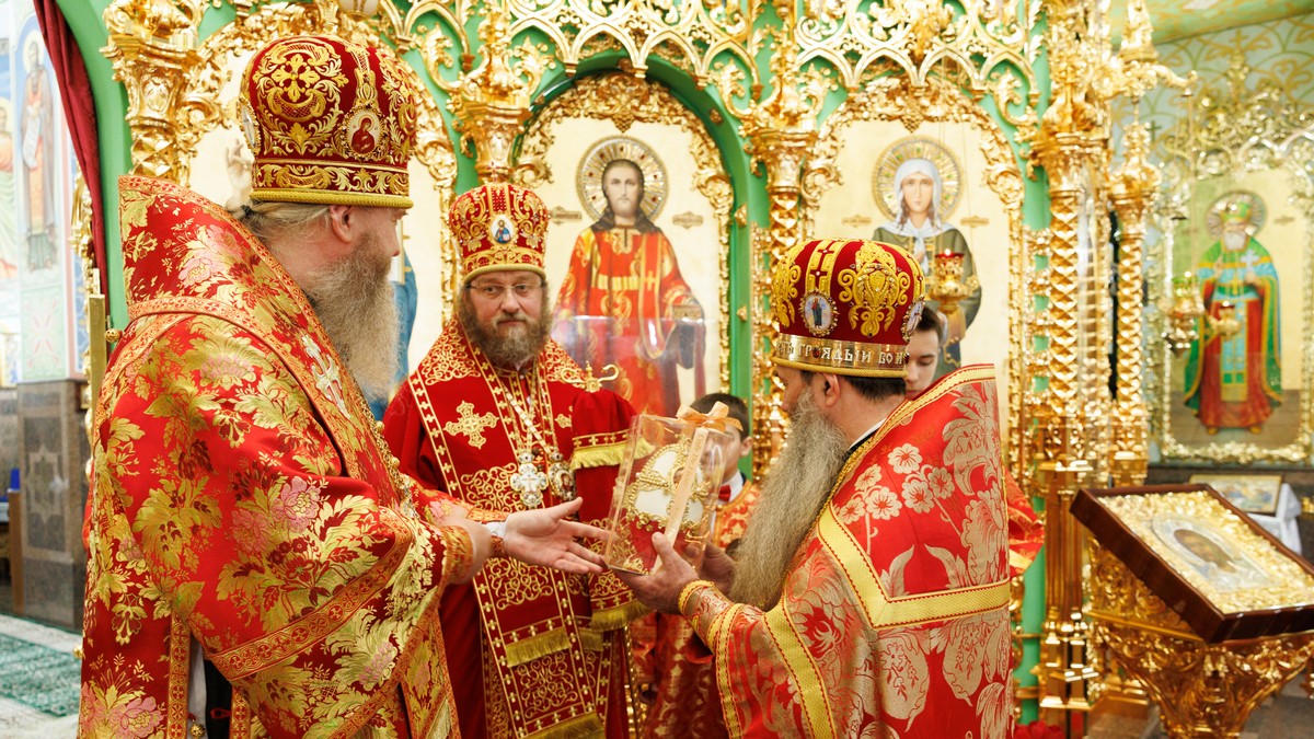 Вернувшись в храм, архипастыри произнесли приветственные слова с церковного амвона, обращенные ко всем участникам торжества.