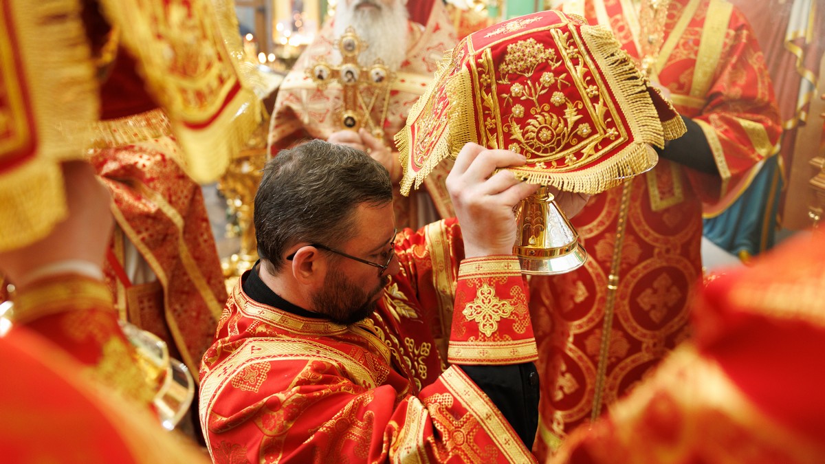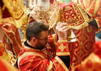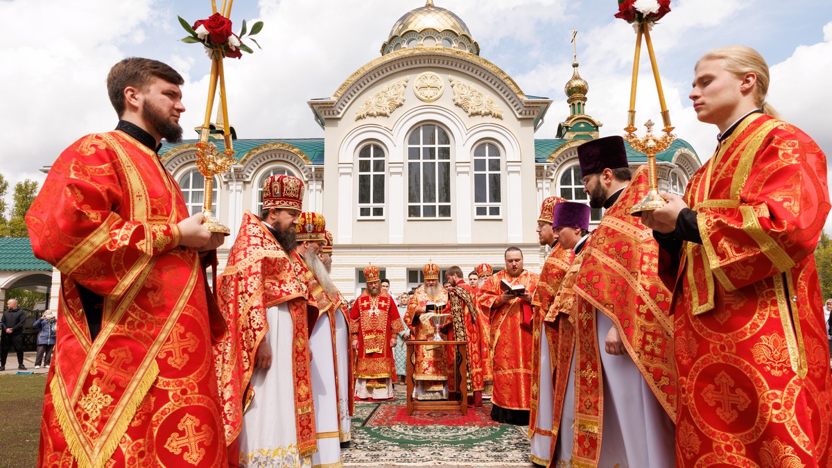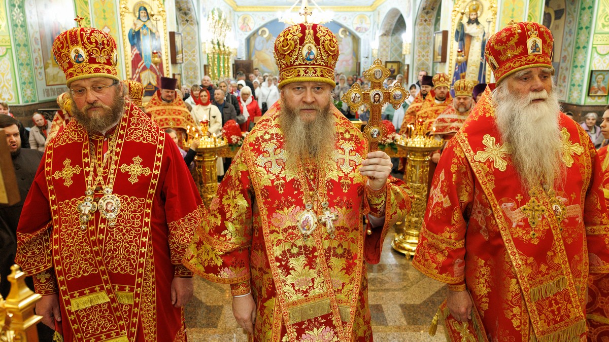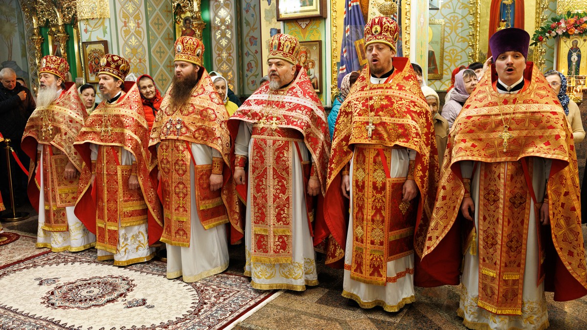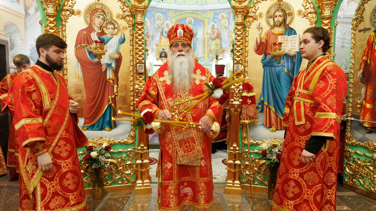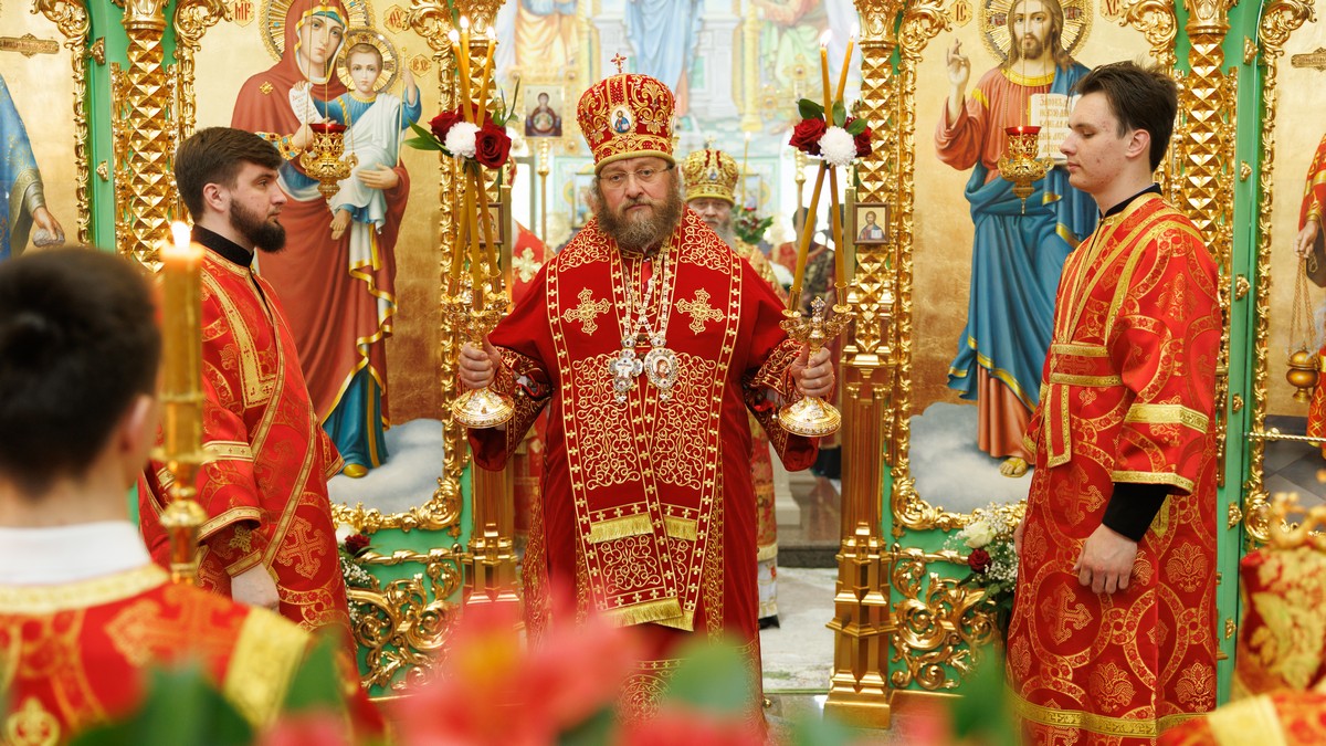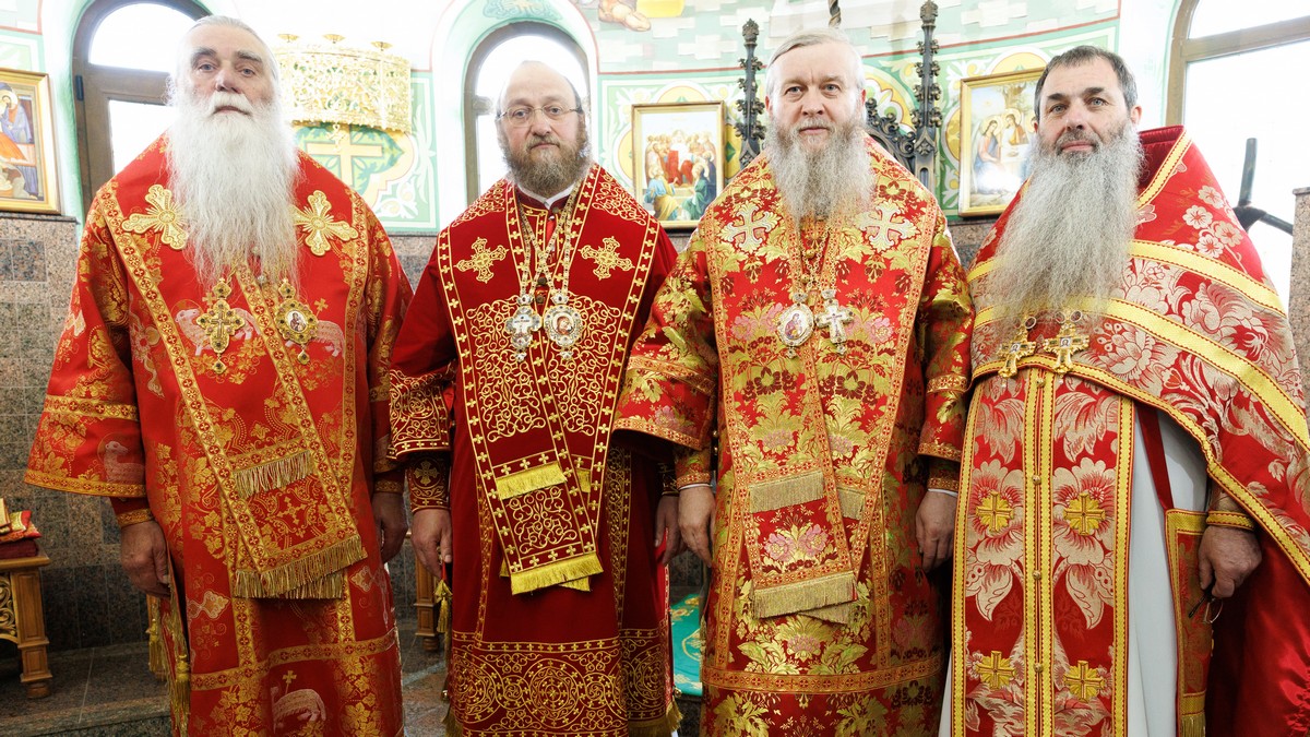 Вернувшись в храм, архипастыри произнесли приветственные слова с церковного амвона, обращенные ко всем участникам торжества.