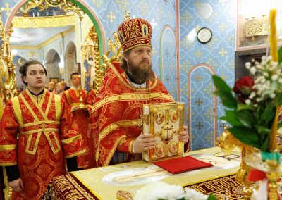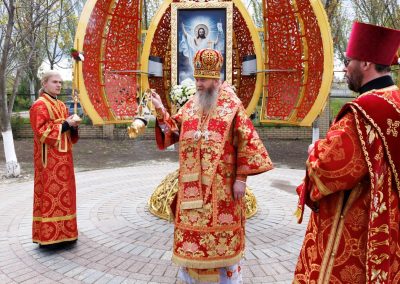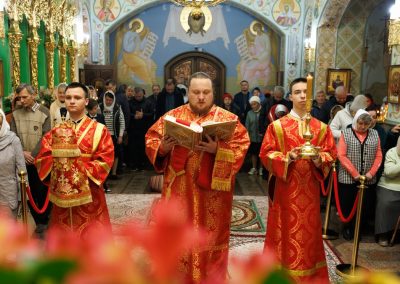 30 апреля, в четверг 3-й седмицы по Пасхе, Высокопреосвященнейший Пантелеимон, митрополит Луганский и Алчевский, в сослужении Высокопреосвященнейшего Никодима, митрополита Северодонецкого и Старобельского, и Высокопреосвященнейшего Аркадия, архиепископа Ровеньковского и Свердловского, совершил Божественную литургию в храме святой блаженной Ксении Петербургской г. Луганска.