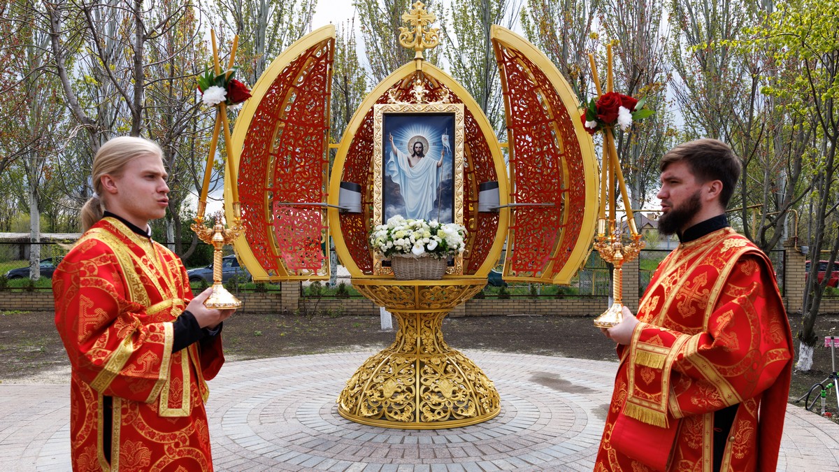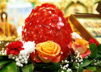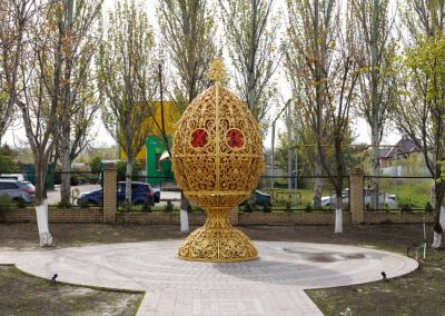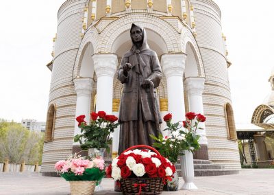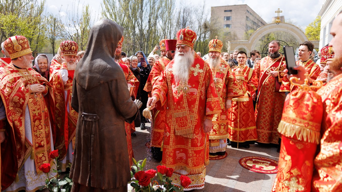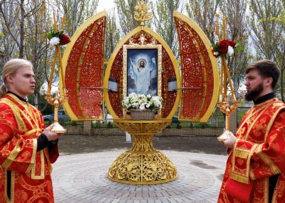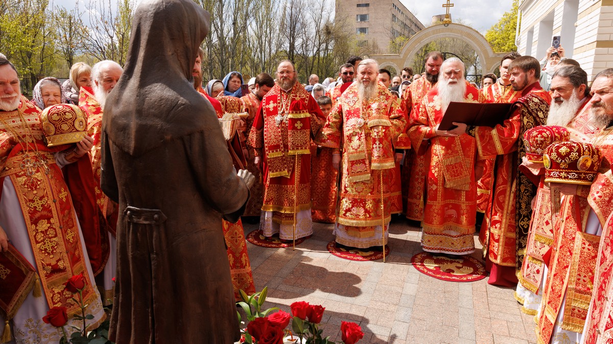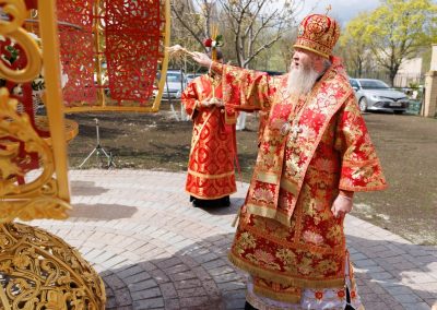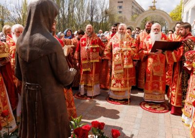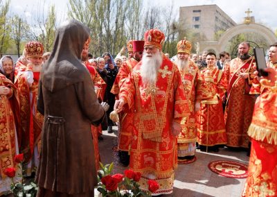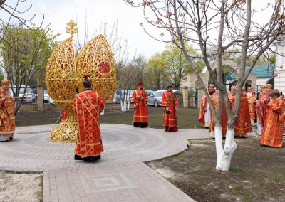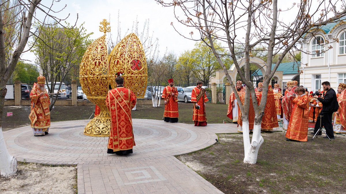 По завершении Литургии, архипастыри освятили икону Воскресения Христова, инсталлированную в пасхальное яйцо из металлической ковки трехметровой высоты и бронзовый памятник святой блаженной Ксении Петербургской, установленные на территории храмового комплекса.