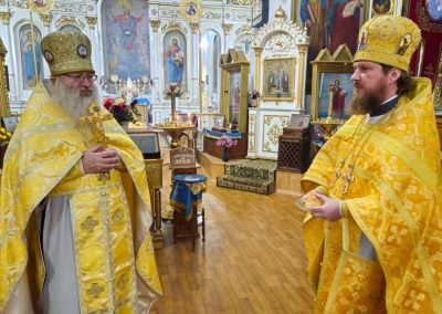 По окончании богослужения, отец Андрей от имени правящего архиерея поздравил именинника с его юбилеем, с пожеланием долгих благословенных лет жизни и трудов на благо Церкви Христовой и народа Божия.