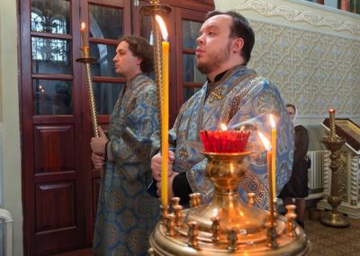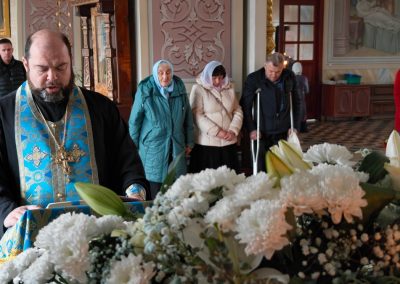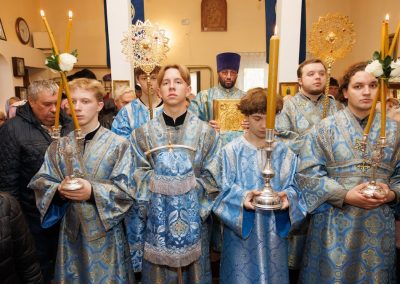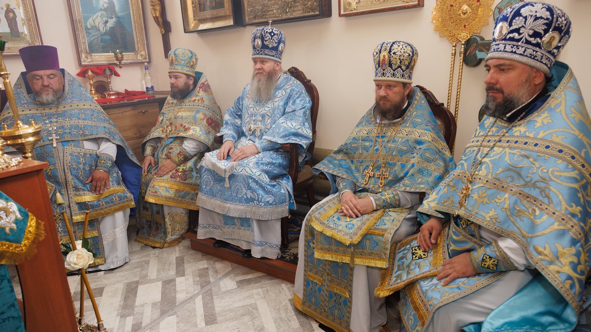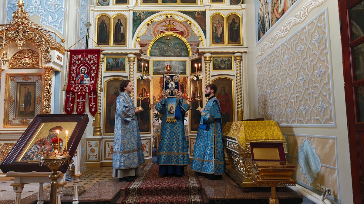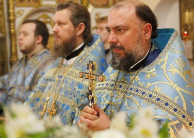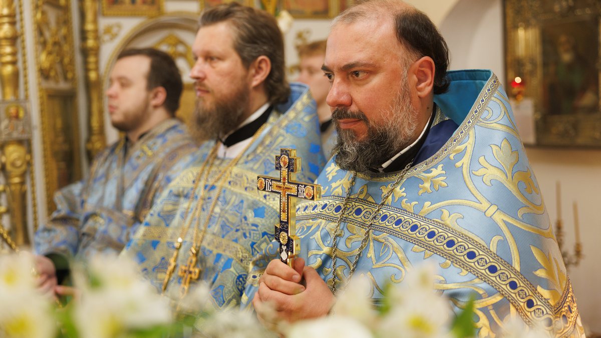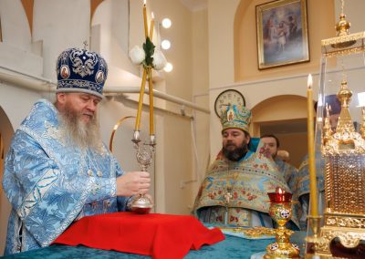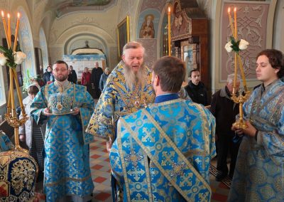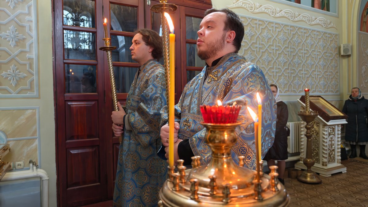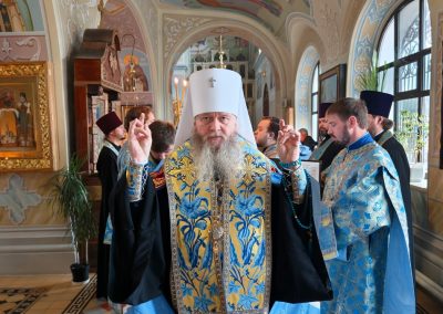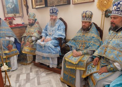 За Литургией Его Высокопреосвященству сослужил секретарь Епархии прот. Андрей Зозуля, и.о благочинного первого городского округа и настоятель храма прот. Алексий Болдырев, а также приглашенное духовенство.