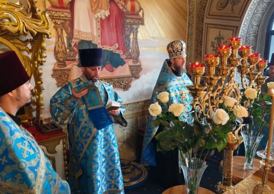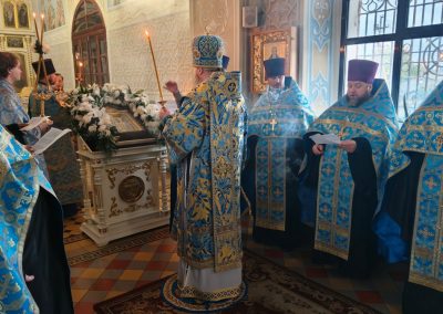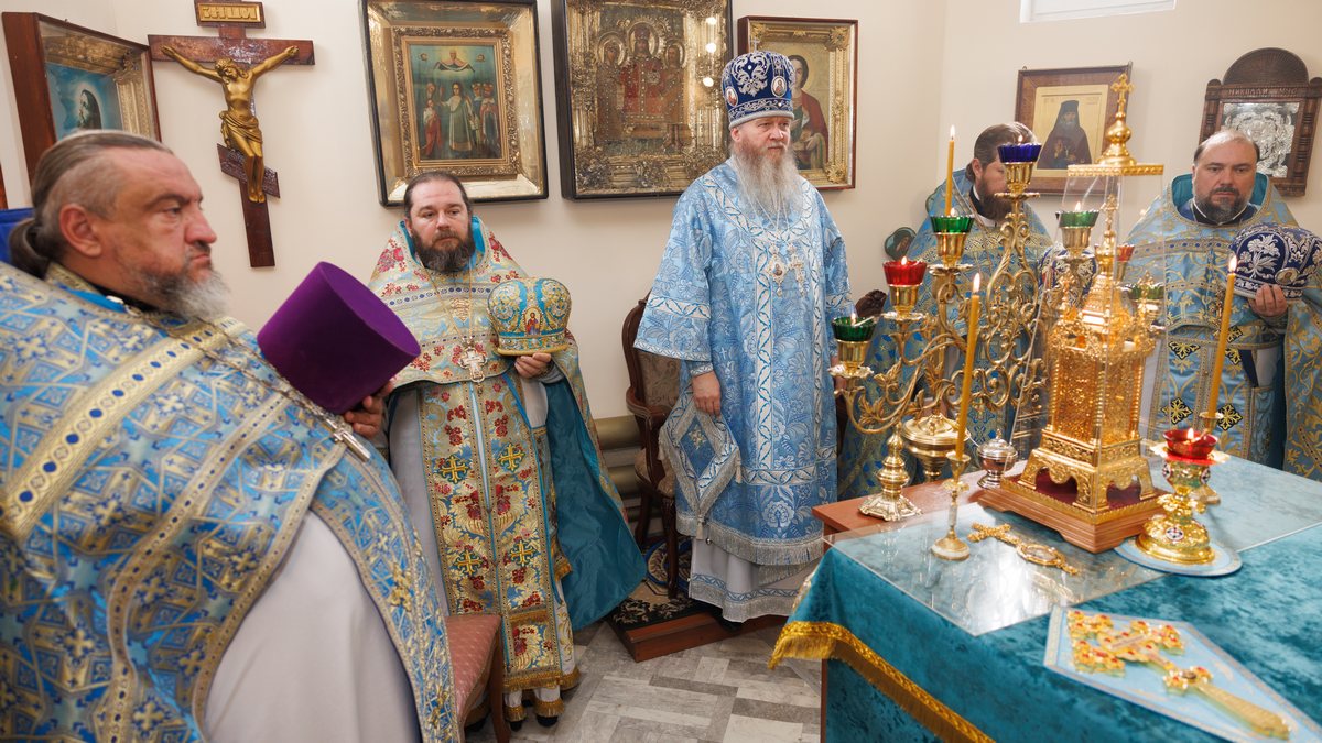 Накануне праздника, владыка совершил Всенощное бдение в Покровском приделе Петро-Павловского кафедрального собора.