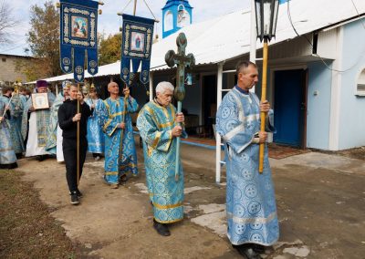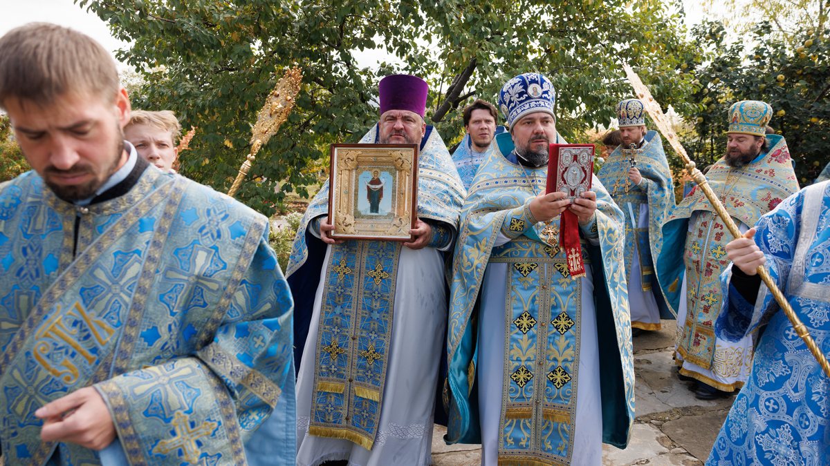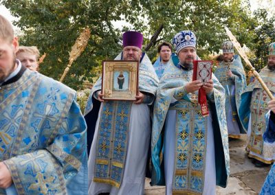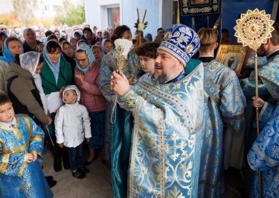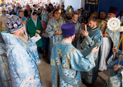 По окончании Литургии все участники соборной молитвы прошли крестным ходом вокруг храма, воспевая в молитвах Господа и Его Пречистую Матерь.
