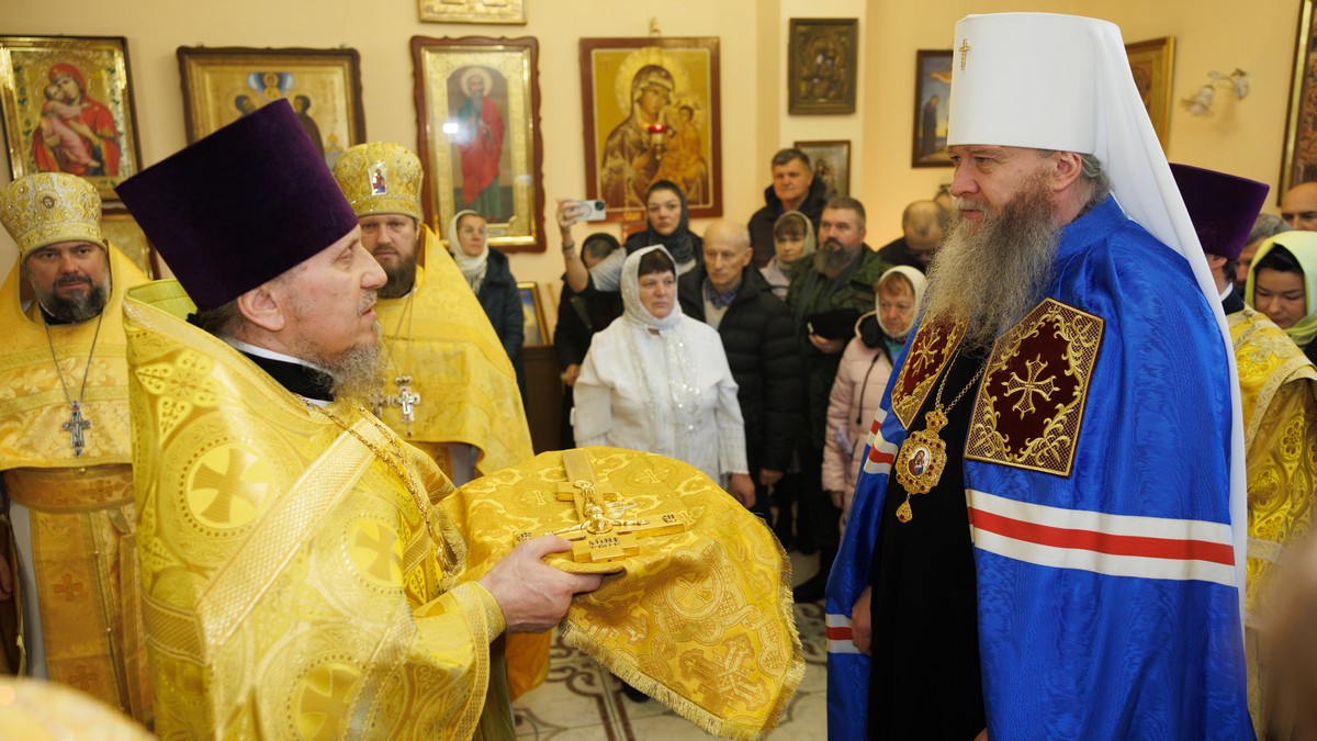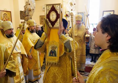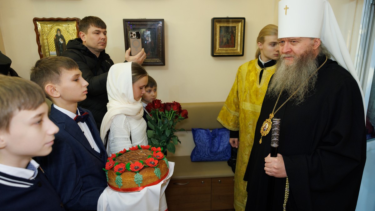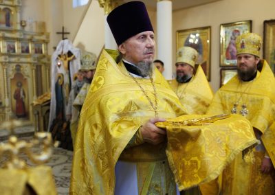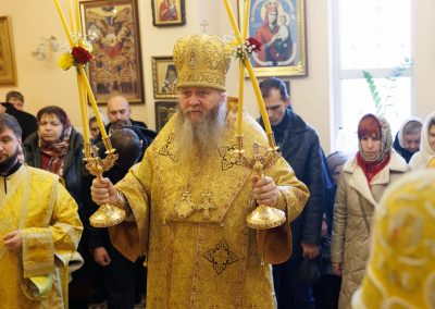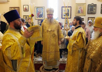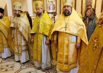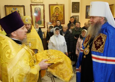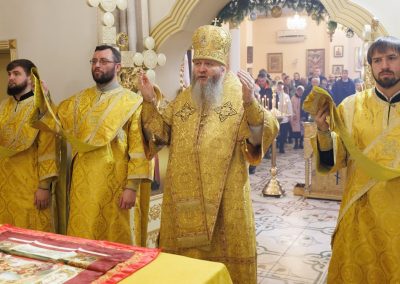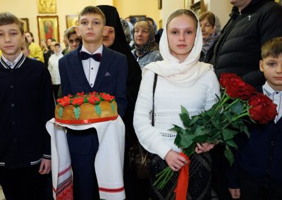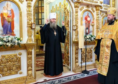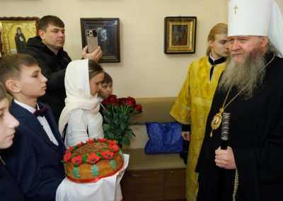 Затем, митрополит Пантелеимон поздравил участников торжества с престольным праздником, а именинников с днем небесного покровителя. Владыка поздравил с днем ангела секретаря Епархии прот. Андрея Зозулю и настоятеля храма свт. Луки Крымского прот. Андрея Андреева и преподал им святую просфору.