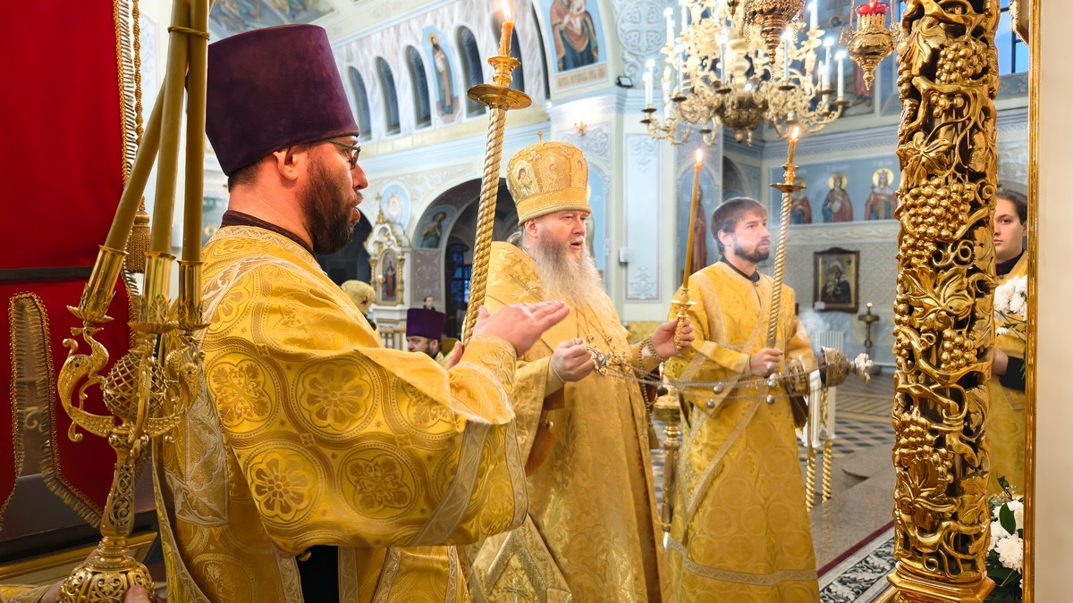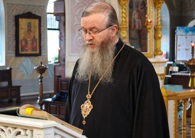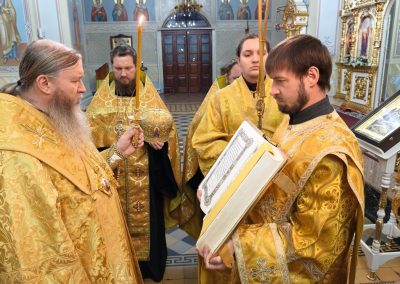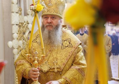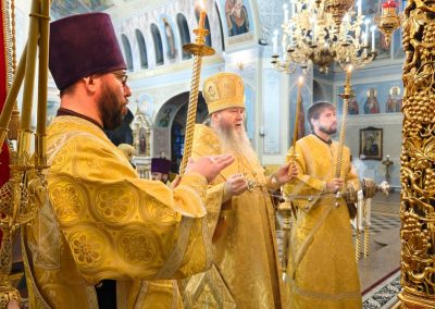 Накануне праздника архипастырь совершил Всенощное бдение в Петро-Павловском кафедральном соборе.