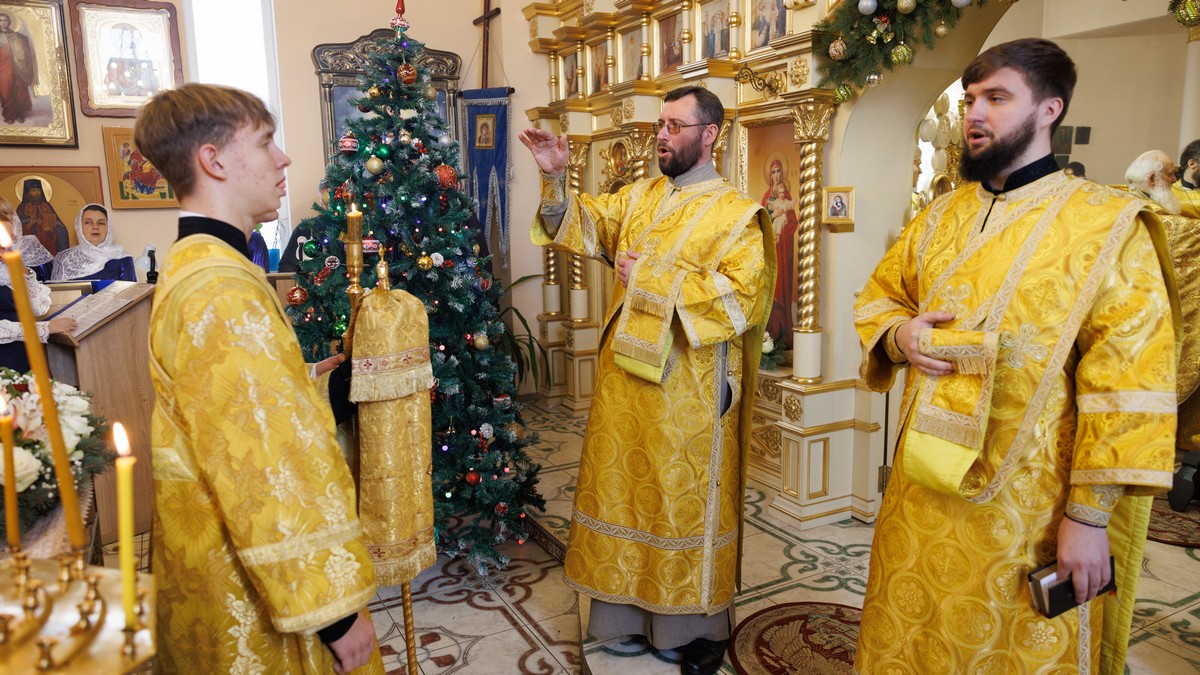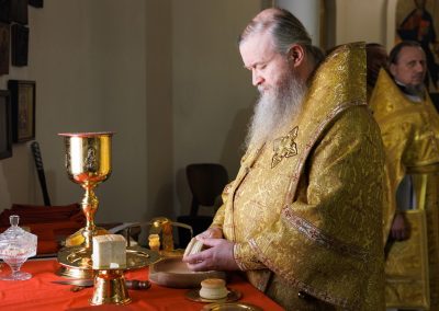 За Божественной литургией Его Высокопреосвященству сослужил секретарь Епархии прот. Андрей Зозуля, и.о благочинного первого Луганского округа прот. Алексий Болдырев, а также духовенство благочиния.