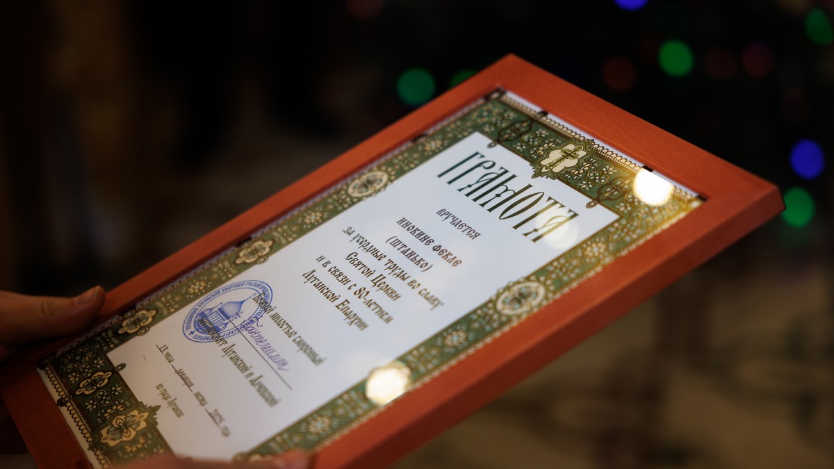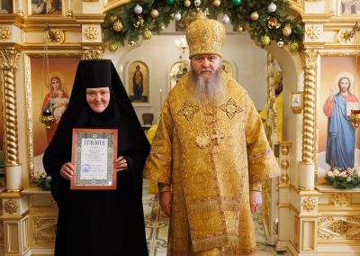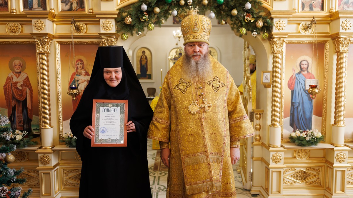 За усердные труды во благо Церкви Христовой, юбилейной грамотой владыка наградил инокиню Феклу (Штанько).