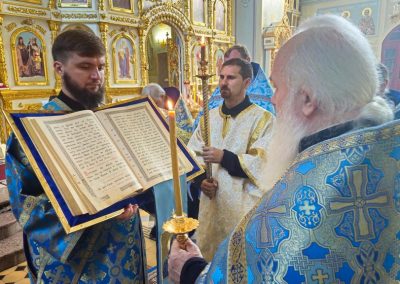 24 сентября, по благословению Высокопреосвященнейшего Пантелеимона, митрополита Луганского и Алчевского, духовник Епархии прот. Владимир Соловей возглавил молебное акафистное пение у Луганской иконы Божией Матери в Петро-Павловском кафедральном соборе.