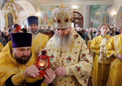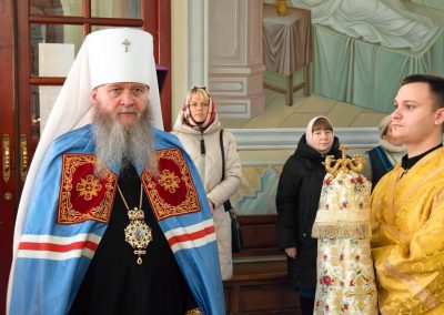 Затем, архипастырь в сослужении отцов благочинных городских округов и духовенства приходов совершил благодарственный молебен, по окончании которого священнослужители и верующий народ унесли с собой частичку радости и тепла, знаменующего приближающийся великий праздник.