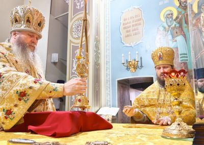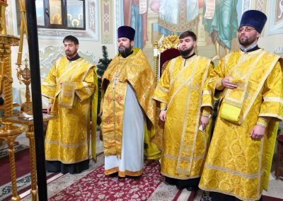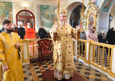 За Литургией Его Высокопреосвященству сослужил секретарь Епархии прот. Андрей Зозуля, а также соборное духовенство.