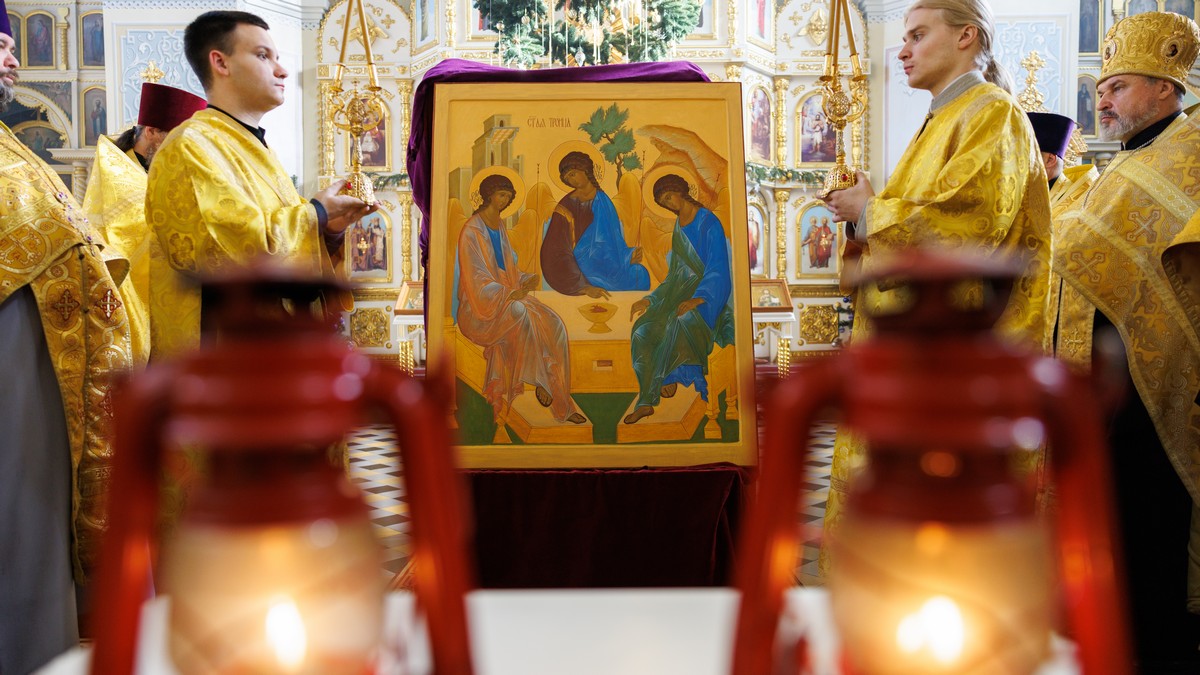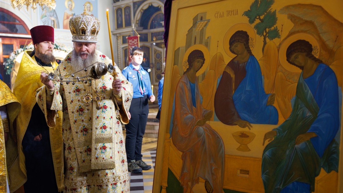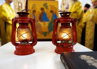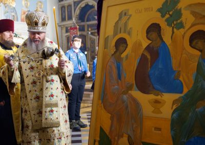 После встречи Вифлеемского огня, владыка освятил икону Святой Троицы, написанную художником, Алексеем Кононенко в рамках проекта «Иконопись — колыбель культурного наследия и выбор Донбасса».