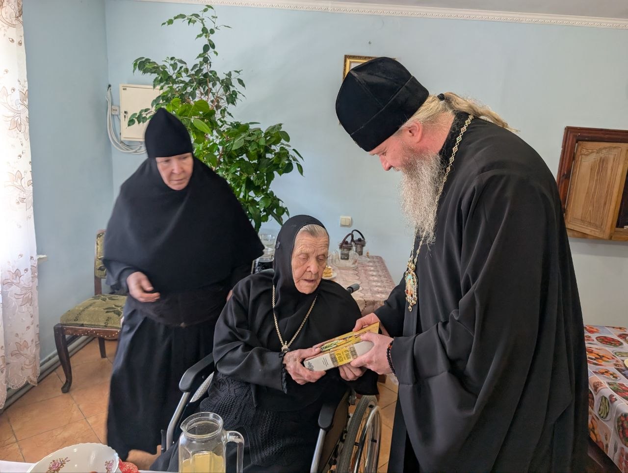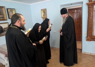 Владыка поздравил матушку игумению Антонию (Рыбиенцеву) с 98-летием, выразил ей добрые пожелания долгих благословенных лет жизни в здравии духовном и физическом.
