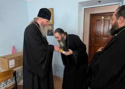 Владыку сопровождал секретарь епархиального отдела по монастырям и монашеству архим. Сергий (Громовик).