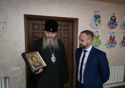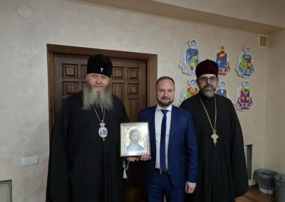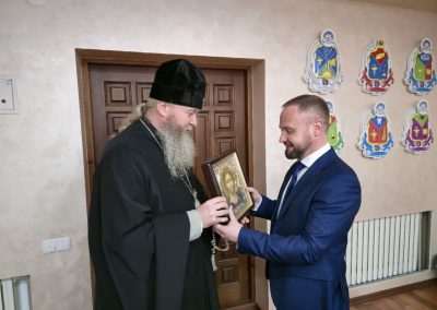 Владыка поздравил именинника с Днем рождения, подарил на молитвенную память образ Спасителя, пожелал крепкого здоровья и помощи Божией в сфере медицинского образования.