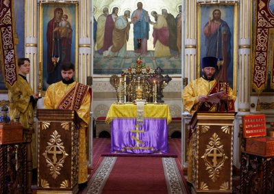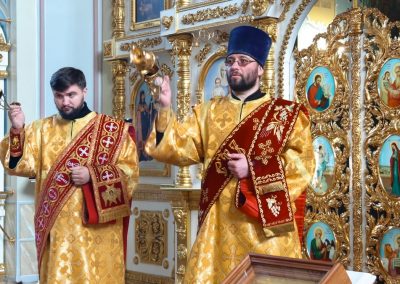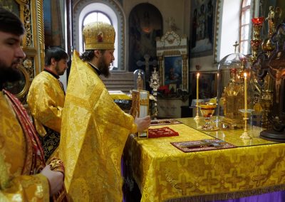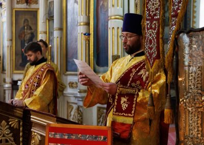За Божественной литургией Его Высокопреосвященству сослужил секретарь Епархии прот. Андрей Зозуля, а также духовенство собора.