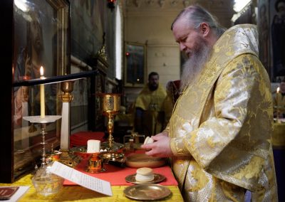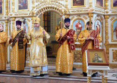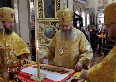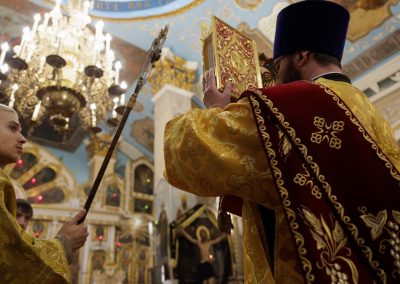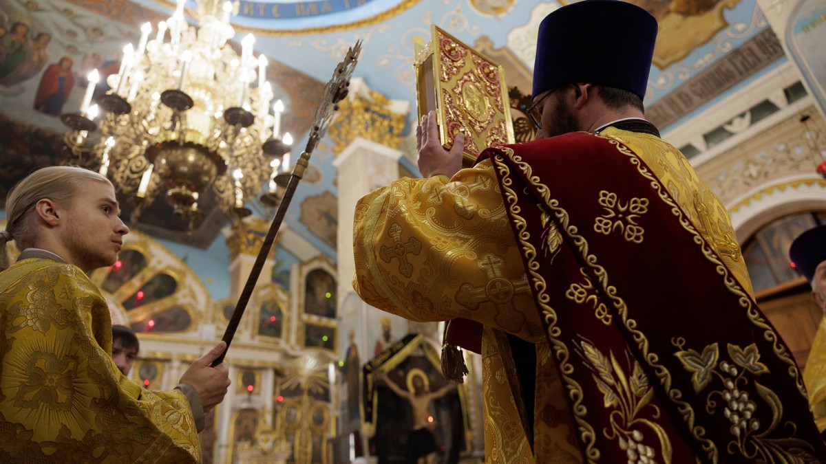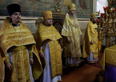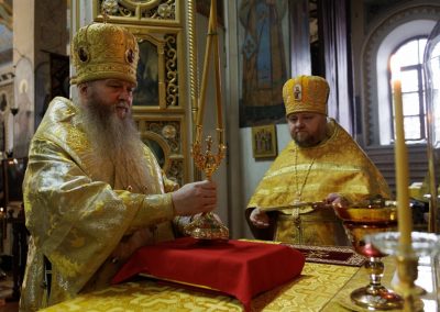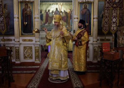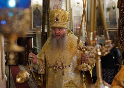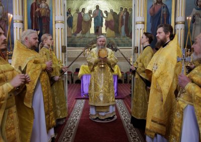 Вечером, накануне праздника, архипастырь совершил Всенощное бдение в Петро-Павловском кафедральном соборе.