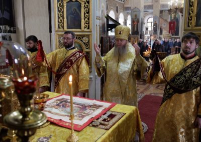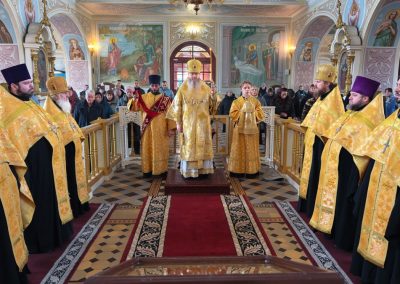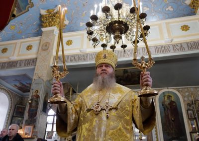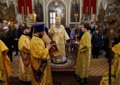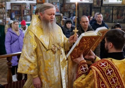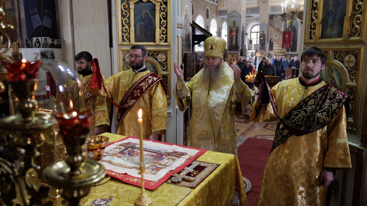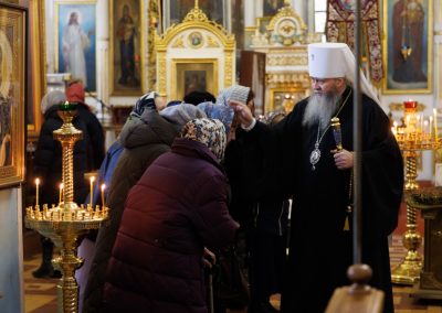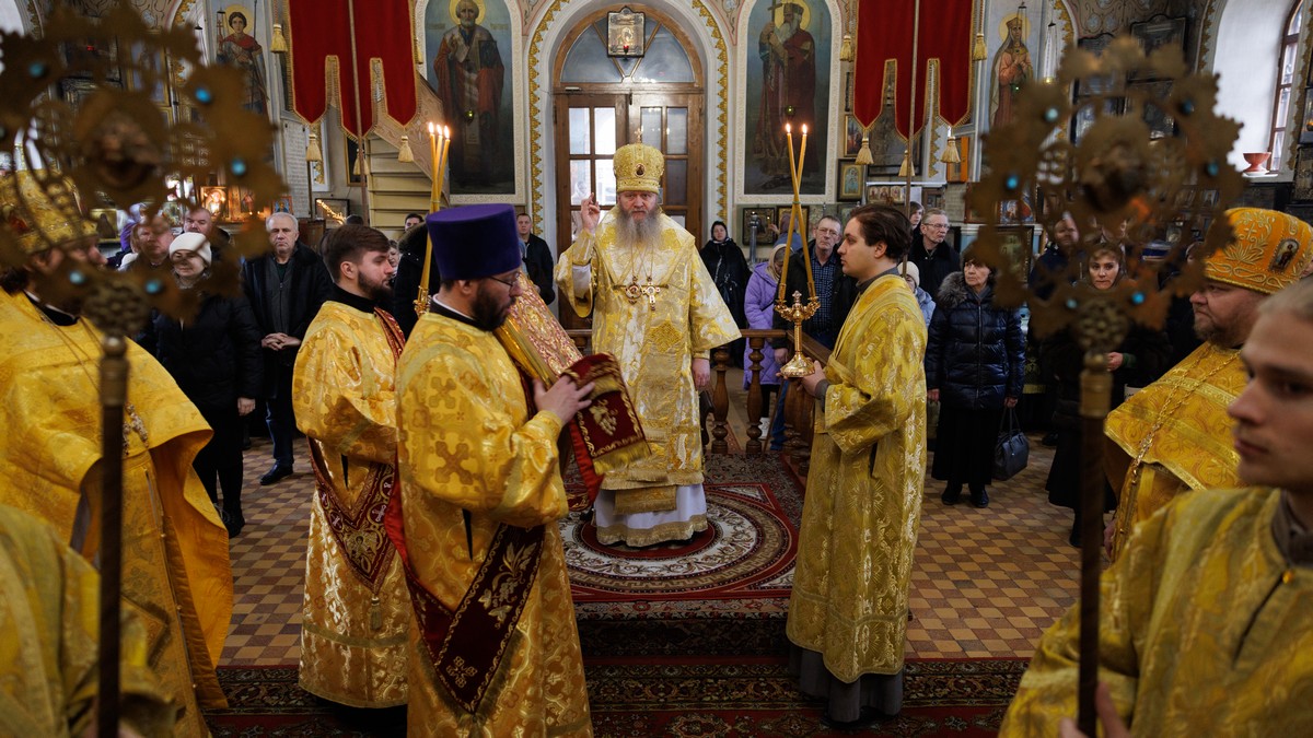 По окончании богослужения, владыка поблагодарил паству за совместную молитву в этот праздничный день, пожелал всем духовных и физических сил на поприще Великого поста и преподал архипастырское благословение.