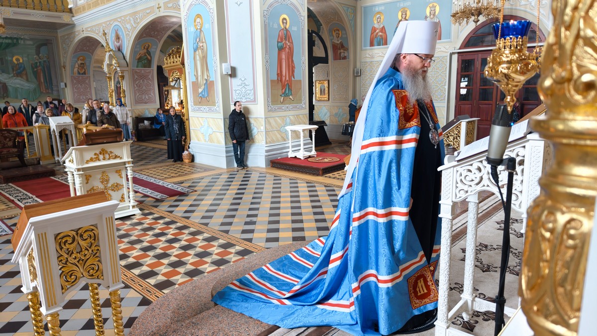 Накануне вечером, архипастырь молился в соборе за Утренней.