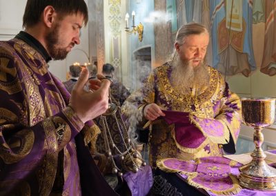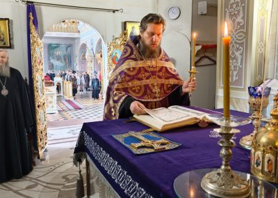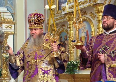 9 апреля, в Великий Четверток, Высокопреосвященнейший Пантелеимон, митрополит Луганский и Алчевский, совершил Литургию свт. Василия Великого в Петро-Павловском кафедральном соборе.