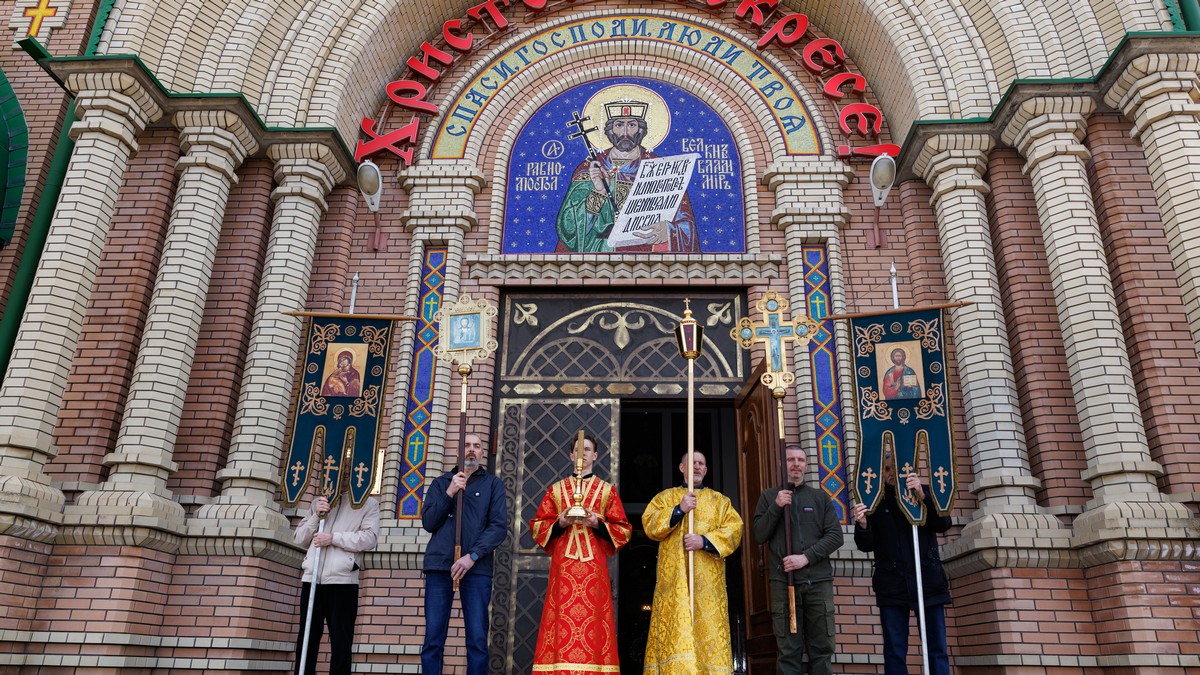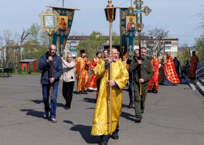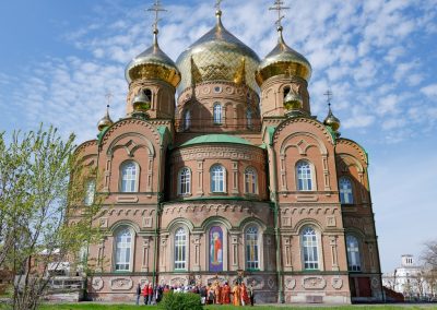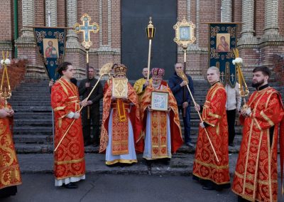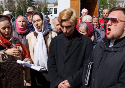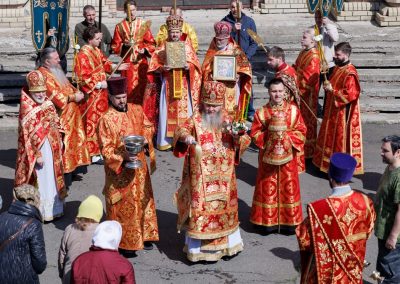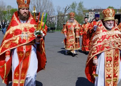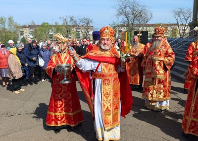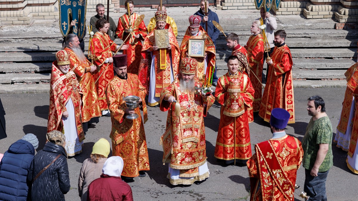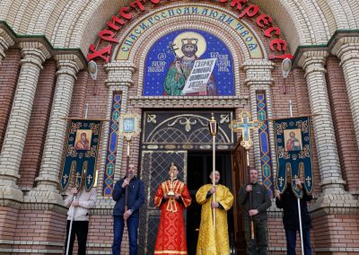Затем, архипастырь со священнослужителями совершил пасхальный крестный ход вокруг собора.