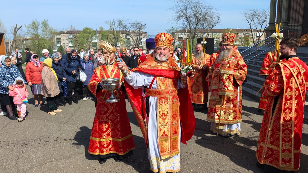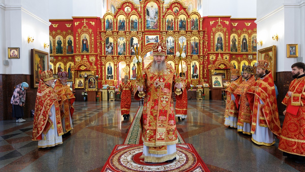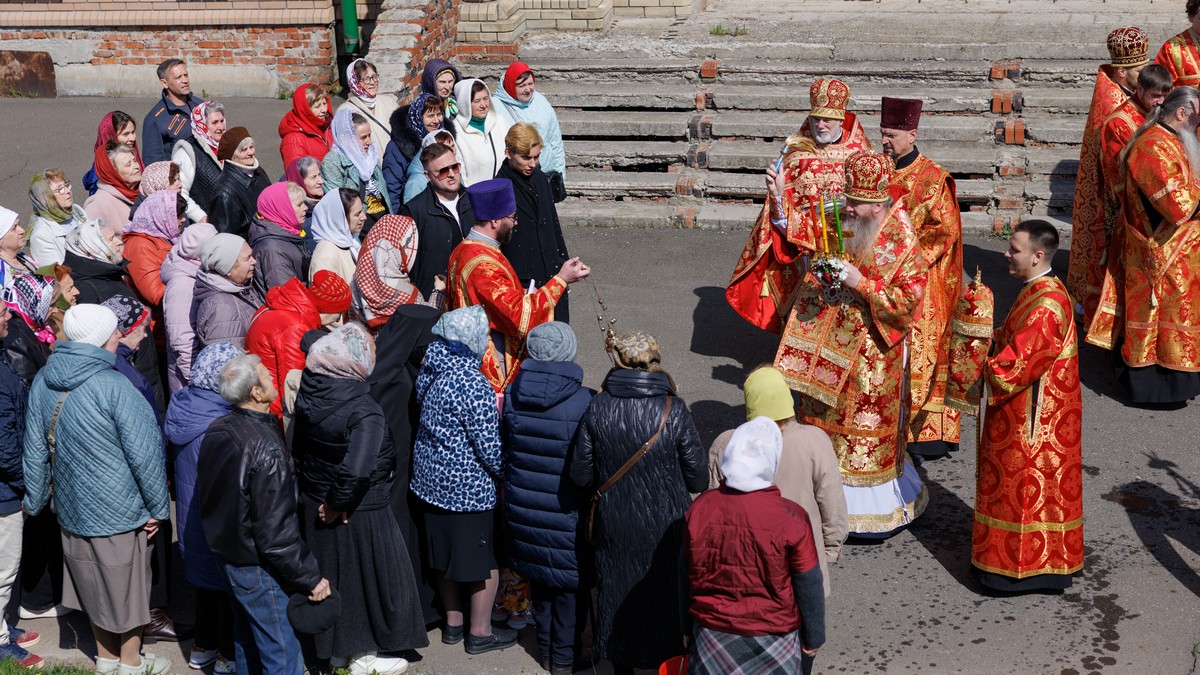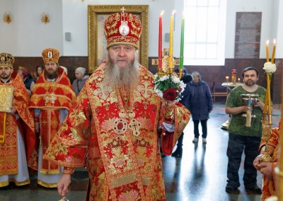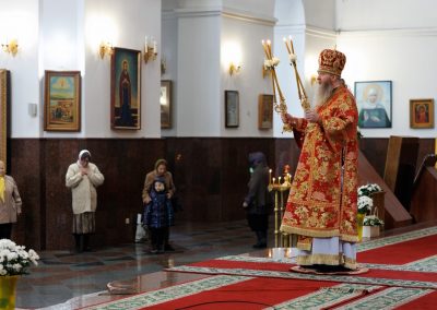 В завершение богослужения, владыка поздравил участников соборной молитвы с Пасхой Христовой и призвал на всех Божие благословение.