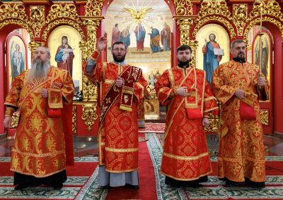 За Литургией Его Высокопреосвященству сослужил секретарь Епархии прот. Андрей Зозуля, настоятель собора прот. Владимир Конончук, а также соборное духовенство.