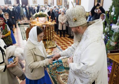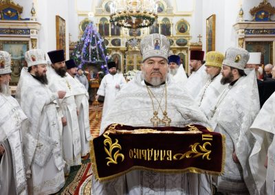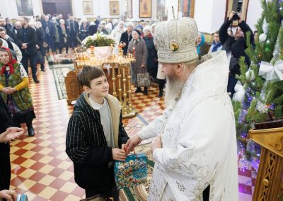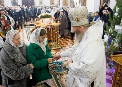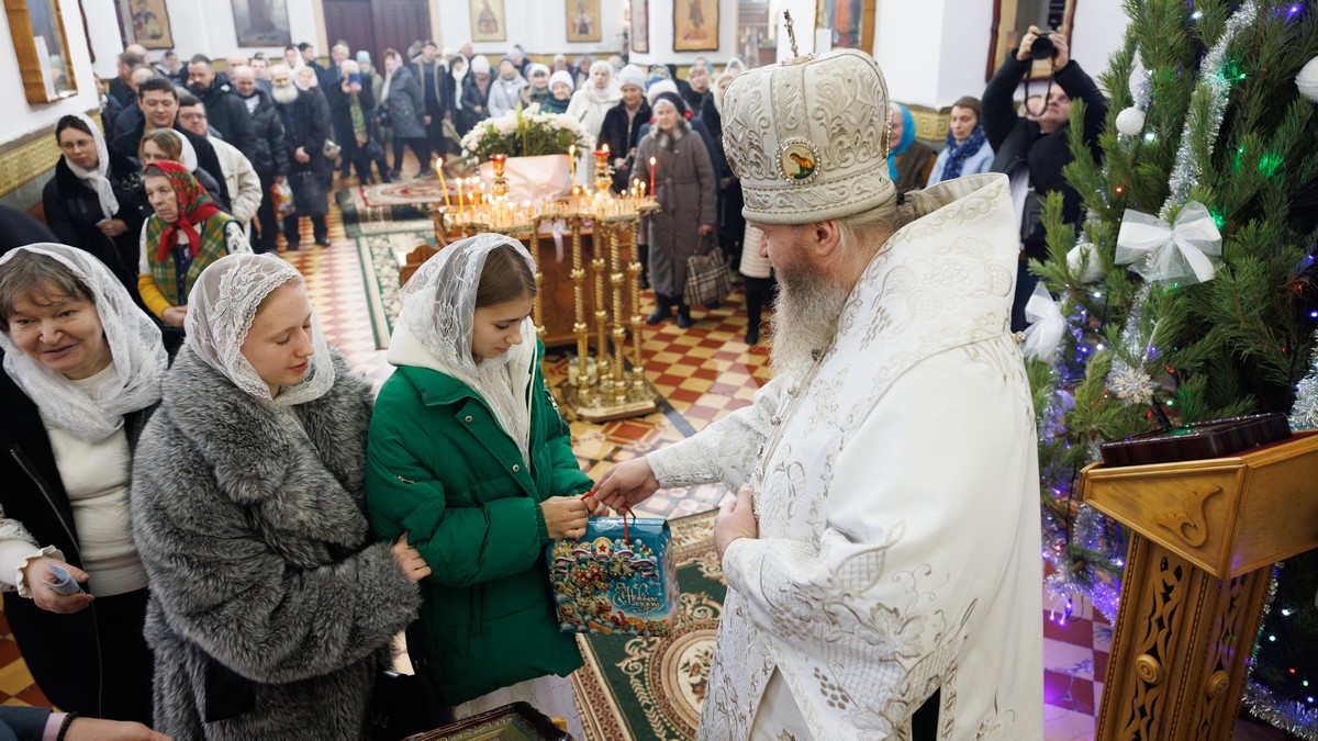 В завершение, владыка поздравил настоятеля, духовенство, прихожан храма и всех жителей города со светлым праздником Рождества Христова.