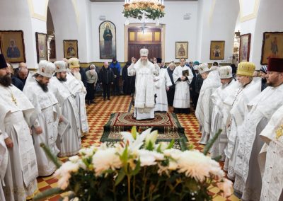 8 января, в праздник Собора Пресвятой Богородицы, Высокопреосвященнейший Пантелеимон, митрополит Луганский и Алчевский, совершил Божественную литургию в Николаевском кафедральном соборе г. Алчевска.