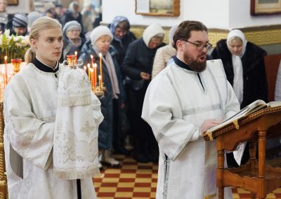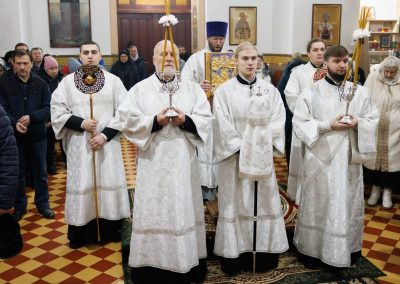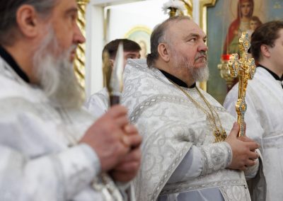 За Литургией Его Высокопреосвященству сослужил секретарь Епархии прот. Андрей Зозуля, благочинный Алчевского округа прот. Александр Устименко, благочинный Перевальского округа прот. Роман Колодка, а также духовенство благочиний.