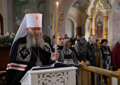 Вечером, 23 февраля, в понедельник первой седмицы Великого поста, Высокопреосвященнейший Пантелеимон, митрополит Луганский и Алчевский вместе с духовенством и верующим народом, молился за Великим повечерием в Петро-Павловском кафедральном соборе.