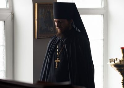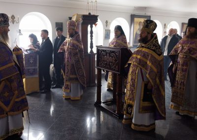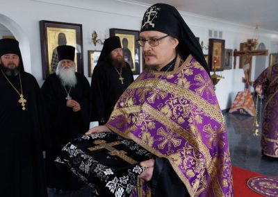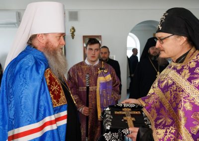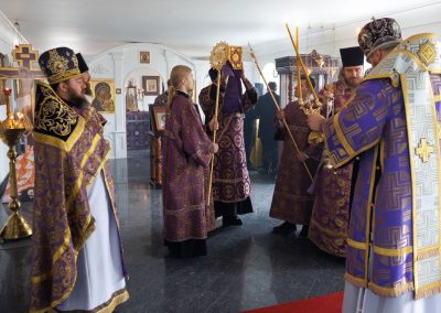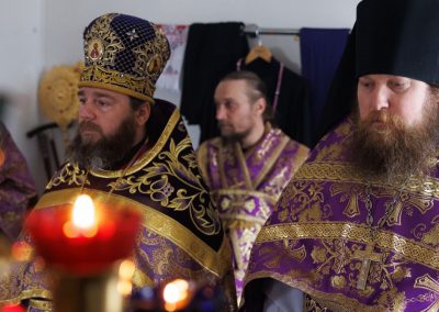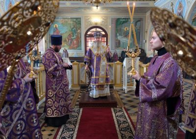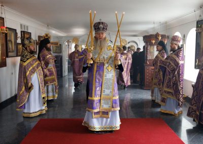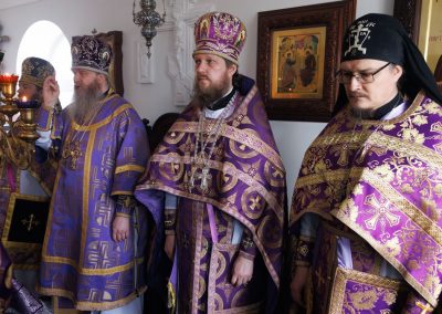 За Божественной литургией Его Высокопреосвященству сослужил секретарь Епархии прот. Андрей Зозуля, секретарь отдела по монастырям и монашеству Луганской Епархии архим. Сергий (Громовик) и братия монастыря в священном сане.